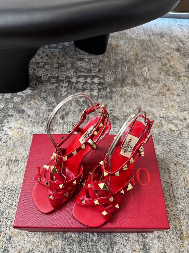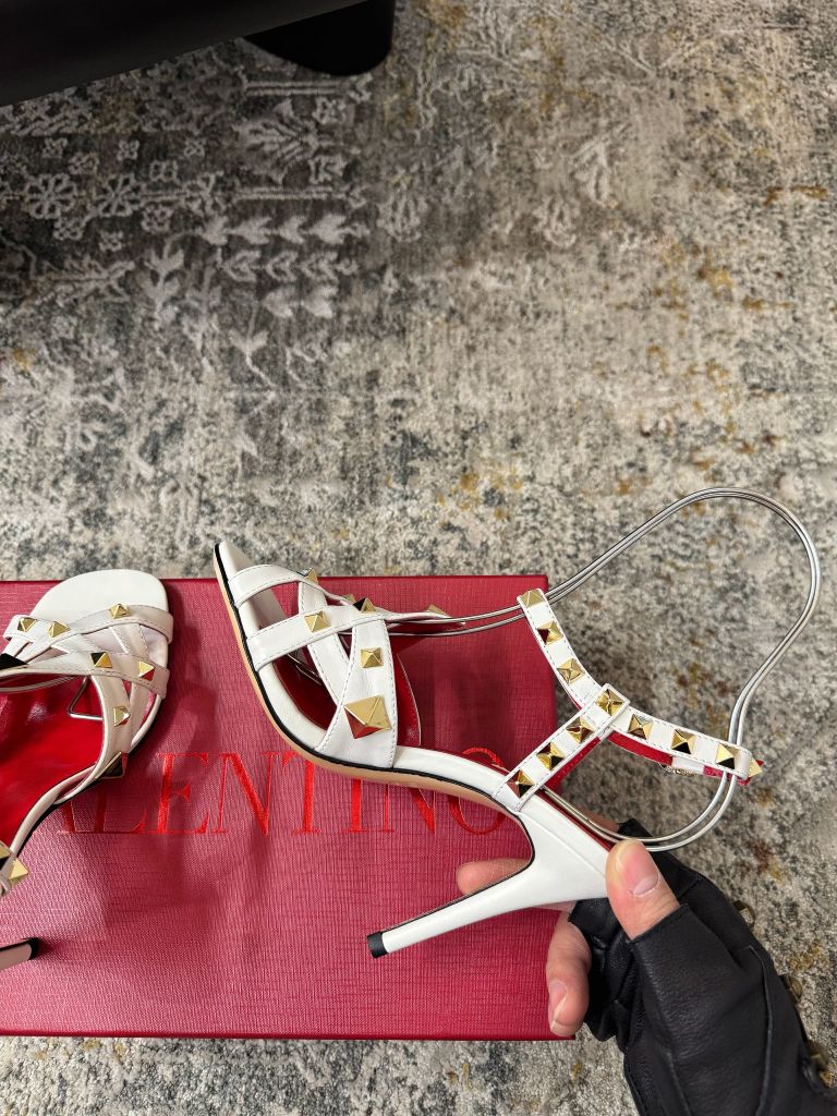 SANDAL CAO GÓT NỮ VLTN ĐINH TÁN PYRAMID SIGNATURE – DÂY QUẤN CỔ CHÂN TÔN DÁNG 1850K (HÀNG ORDER QUỐC TẾ)