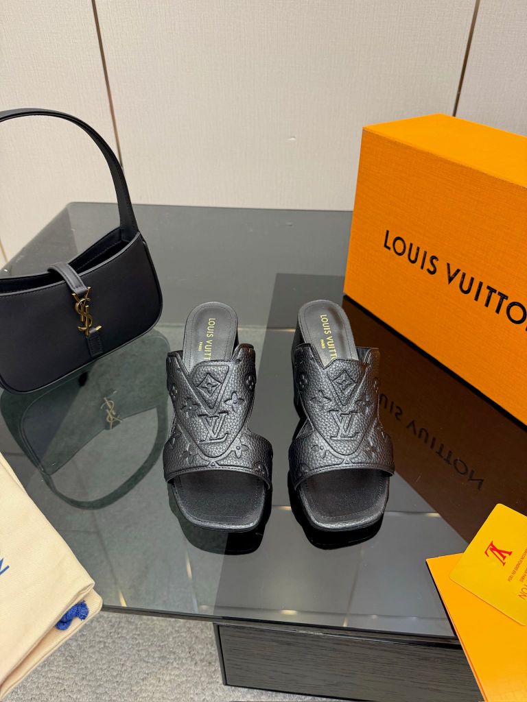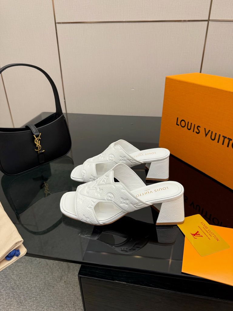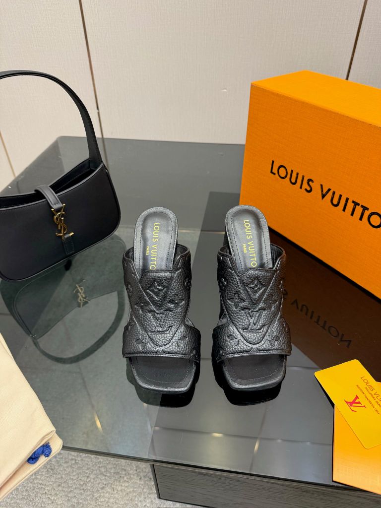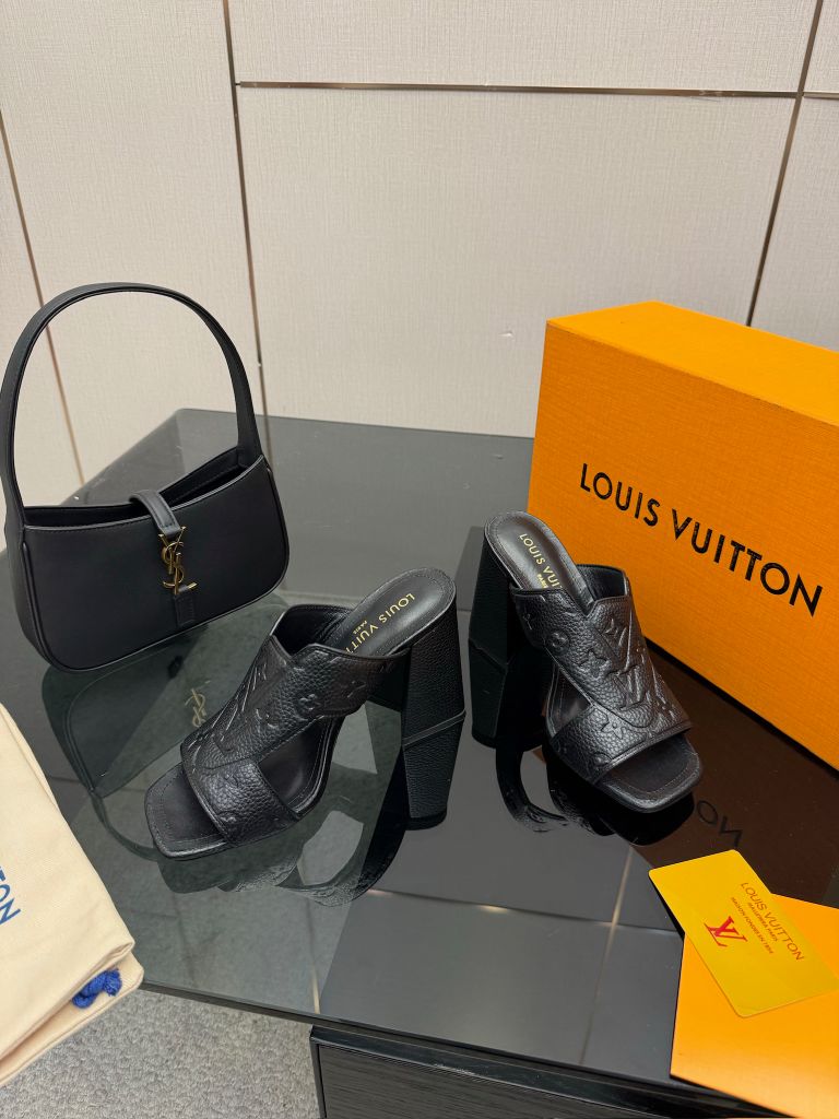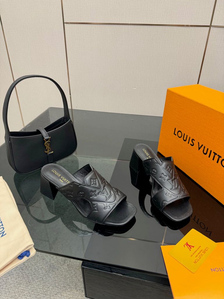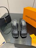 SANDAL CAO GÓT NỮ L V MONOGRAM DẬP NỔI DÁNG MULE CAO 5.5CM / 9CM 1750K (HÀNG ORDER QUỐC TẾ)