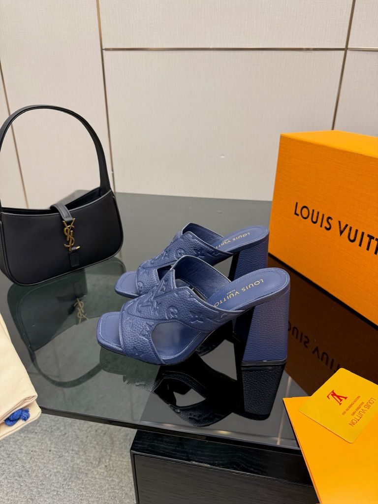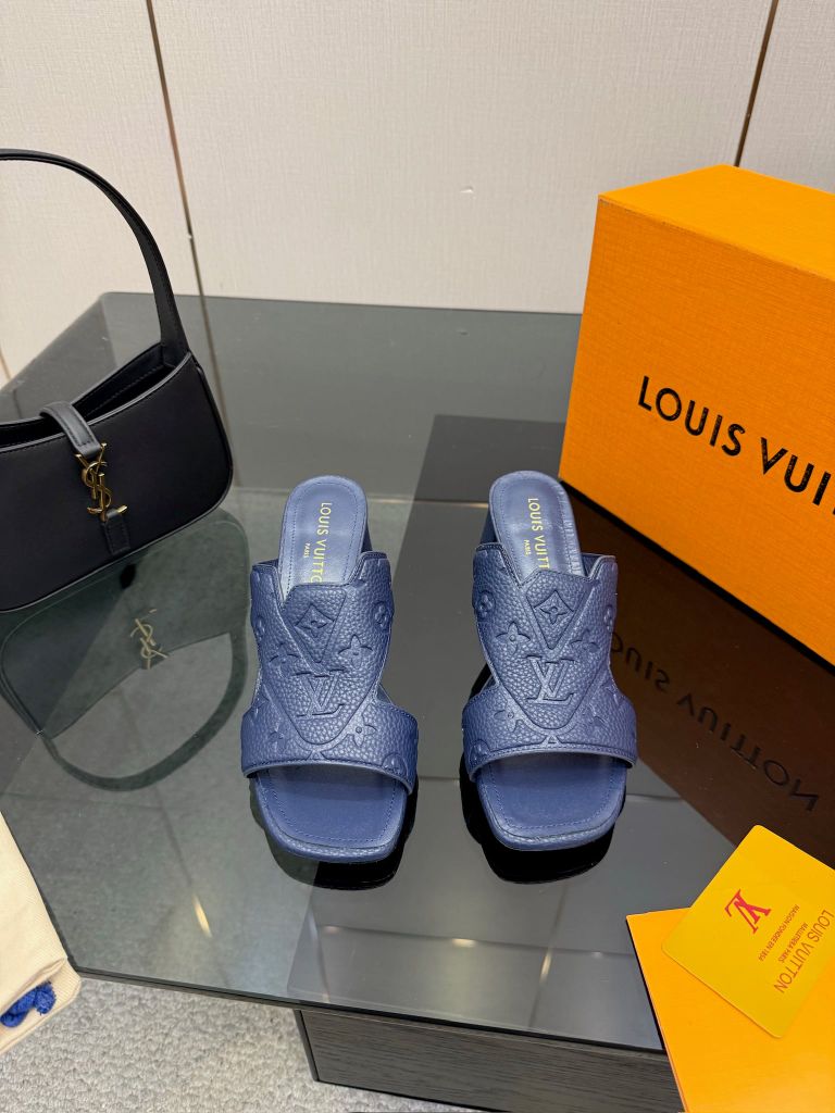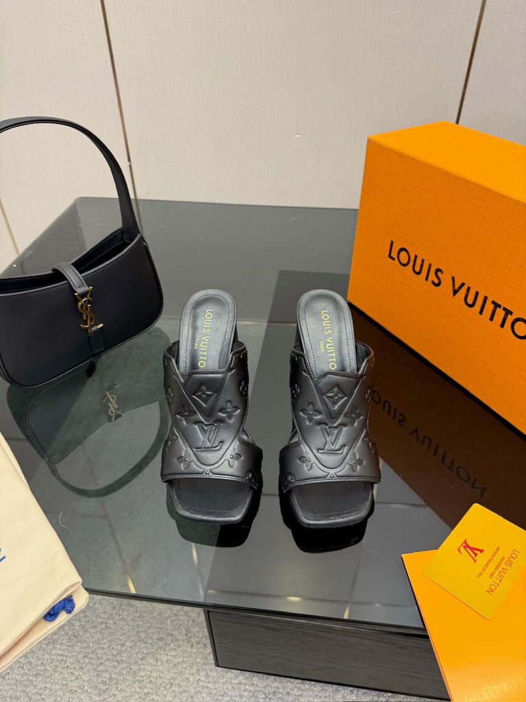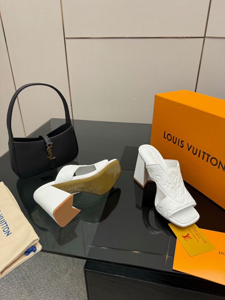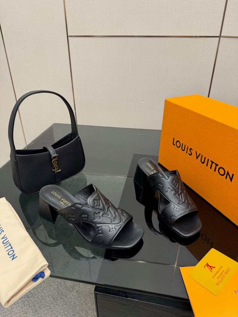 SANDAL CAO GÓT NỮ L V MONOGRAM DẬP NỔI DÁNG MULE CAO 5.5CM / 9CM 1750K (HÀNG ORDER QUỐC TẾ)