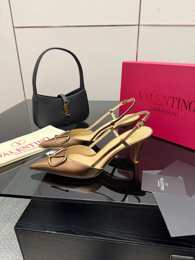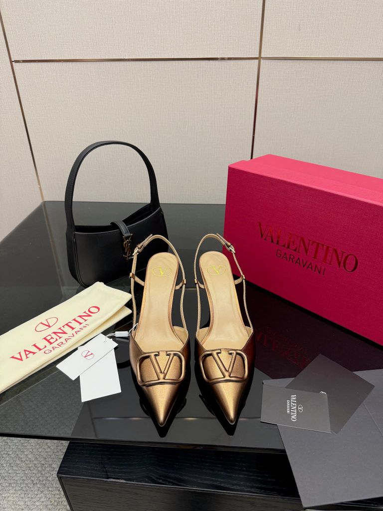 Một lựa chọn “đúng chuẩn thanh lịch”: phom mũi nhọn gọn chân, điểm nhấn logo V nổi khối tạo khí chất sang trọng, nhìn tối giản nhưng cực kỳ đắt giá.