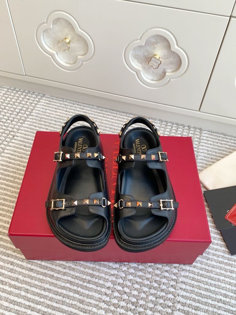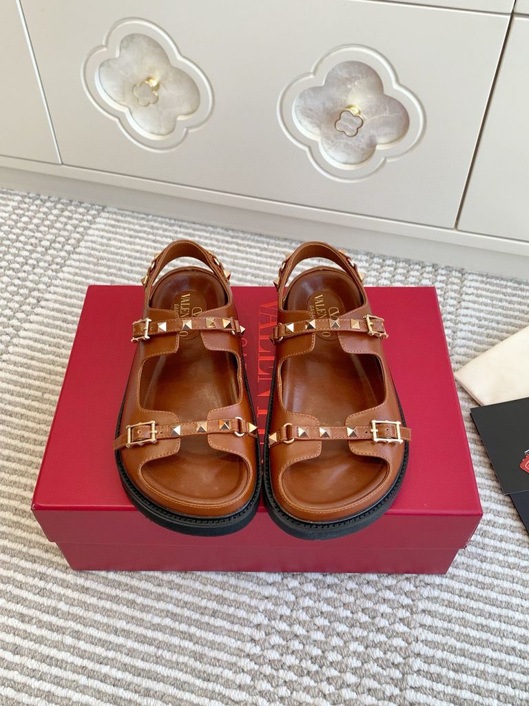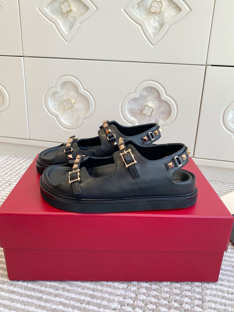 Sandal nữ VALENTINO* da bò tán Đinh vàng mẫu mới kiểu đẹp độc VIP 1800k