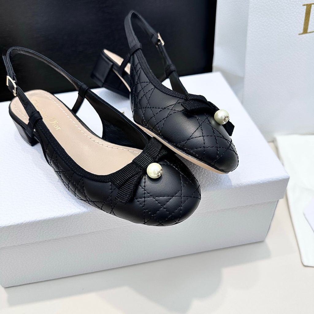 GIÀY SANDAL NỮ DR CD NƠ NGỌC TRAI QUAI HẬU THANH LỊCH – CHẦN BÔNG SIGNATURE, GÓT THẤP DỄ ĐI 1800k (HÀNG ORDER QUỐC TẾ)*