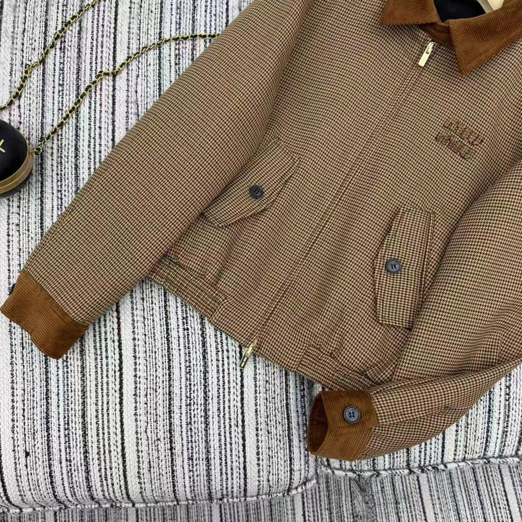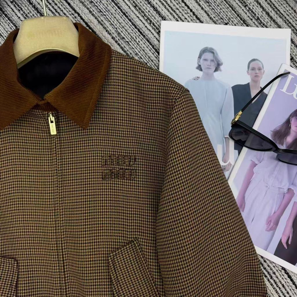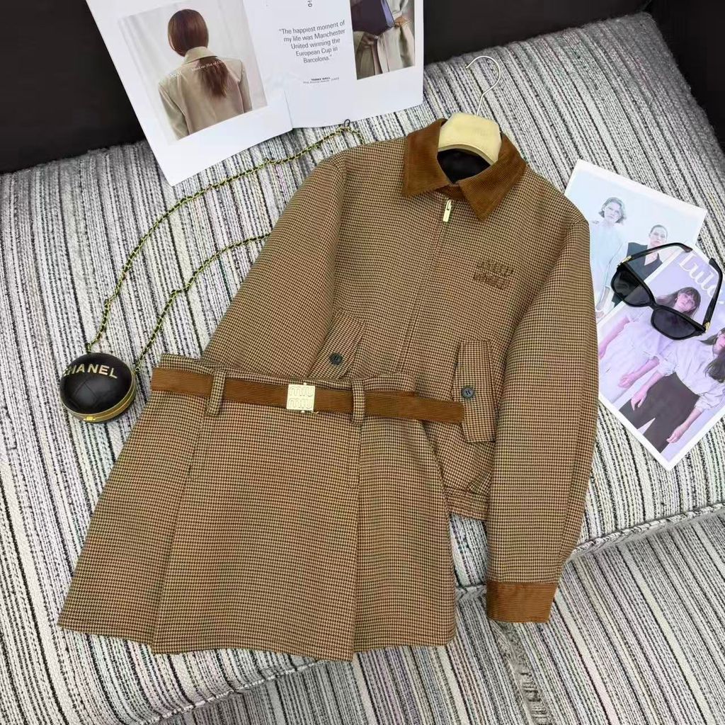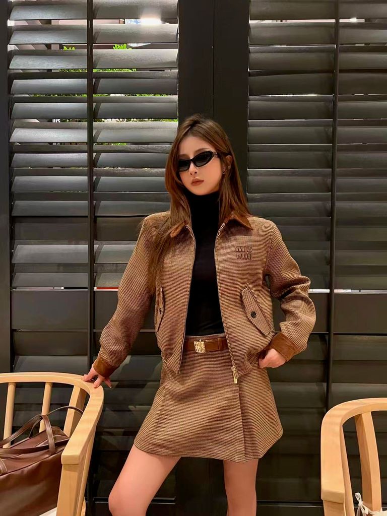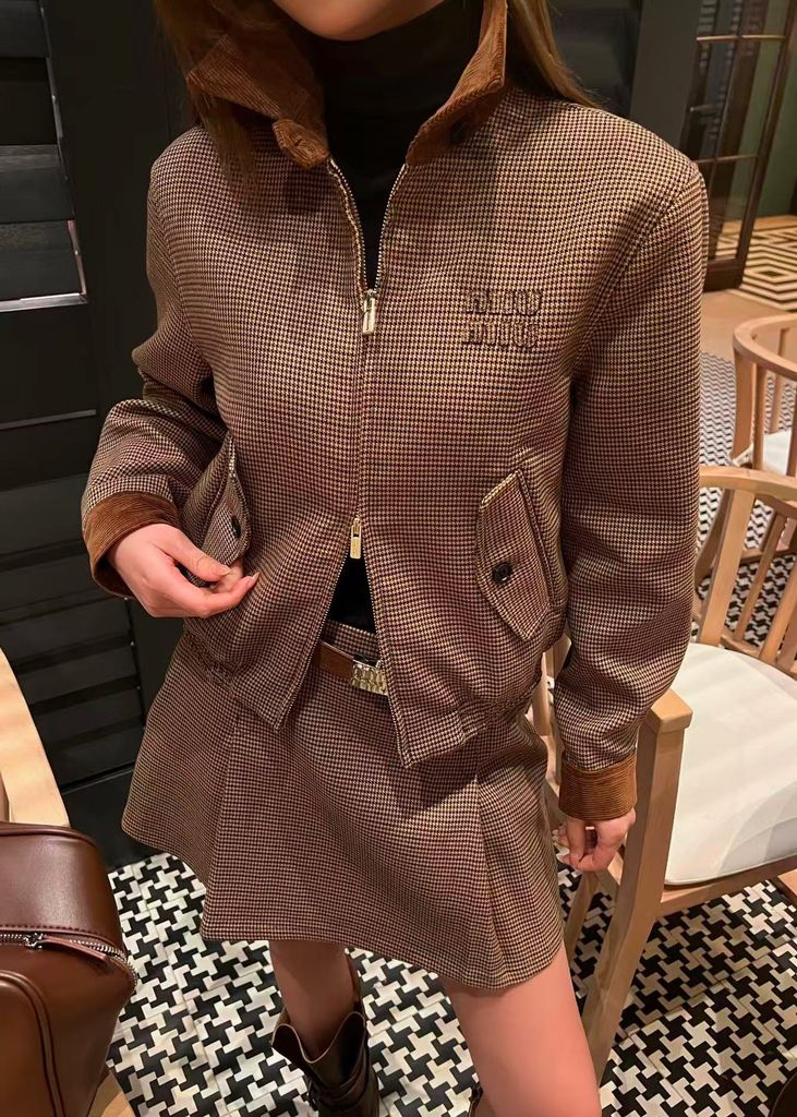 BỘ ÁO KHOÁC VÁY NỮ MIU* HOUNDSTOOTH CỔ BẺ LỨT THÊU CHỮ SIÊU XINH 2200K (HÀNG ORDER QUỐC TẾ)