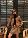 Set áo khoác kèm chân váy ngắn cho những ngày đầu thu – đông, diện lên là thấy ngay vẻ trẻ trung nhưng vẫn rất chỉn chu, sang nhẹ nhàng mà không hề “làm quá”.