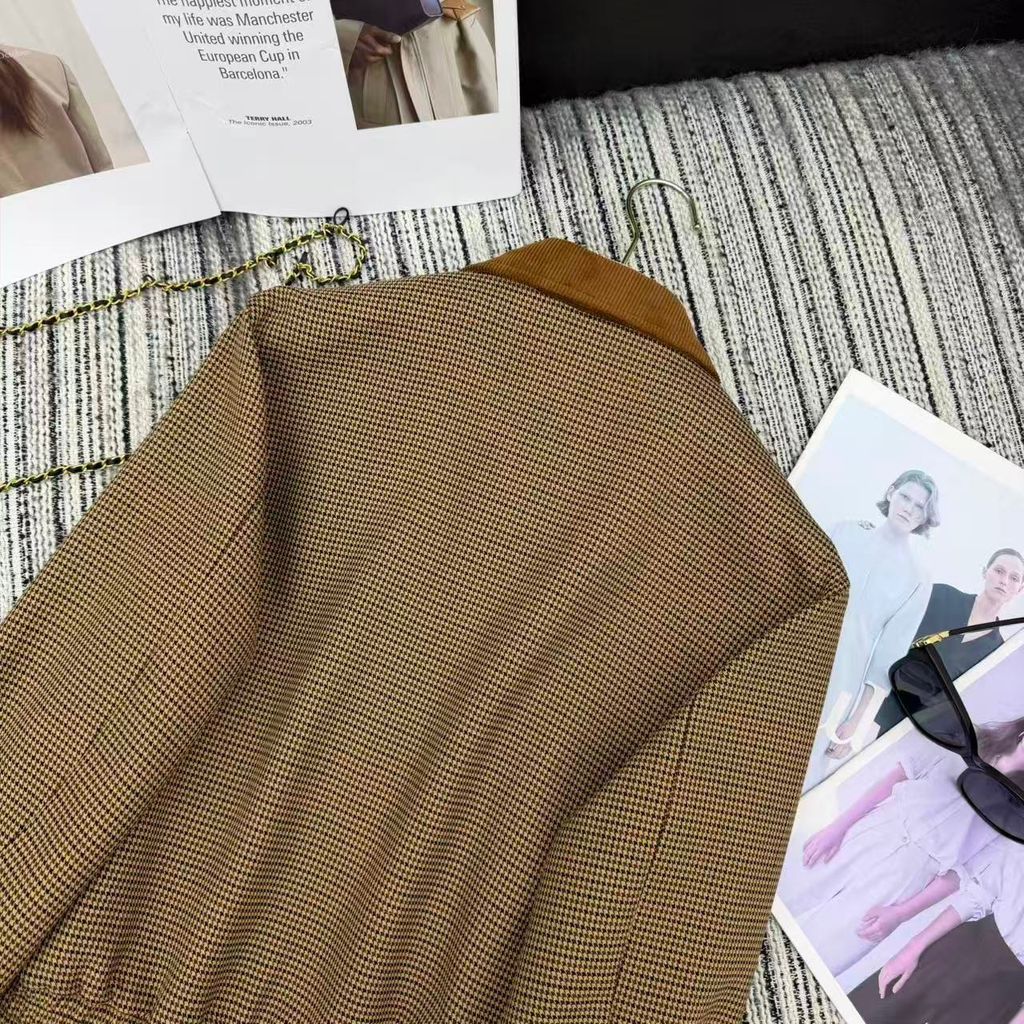 • Họa tiết kẻ nhỏ kiểu houndstooth thời thượng, vừa cổ điển vừa hiện đại.