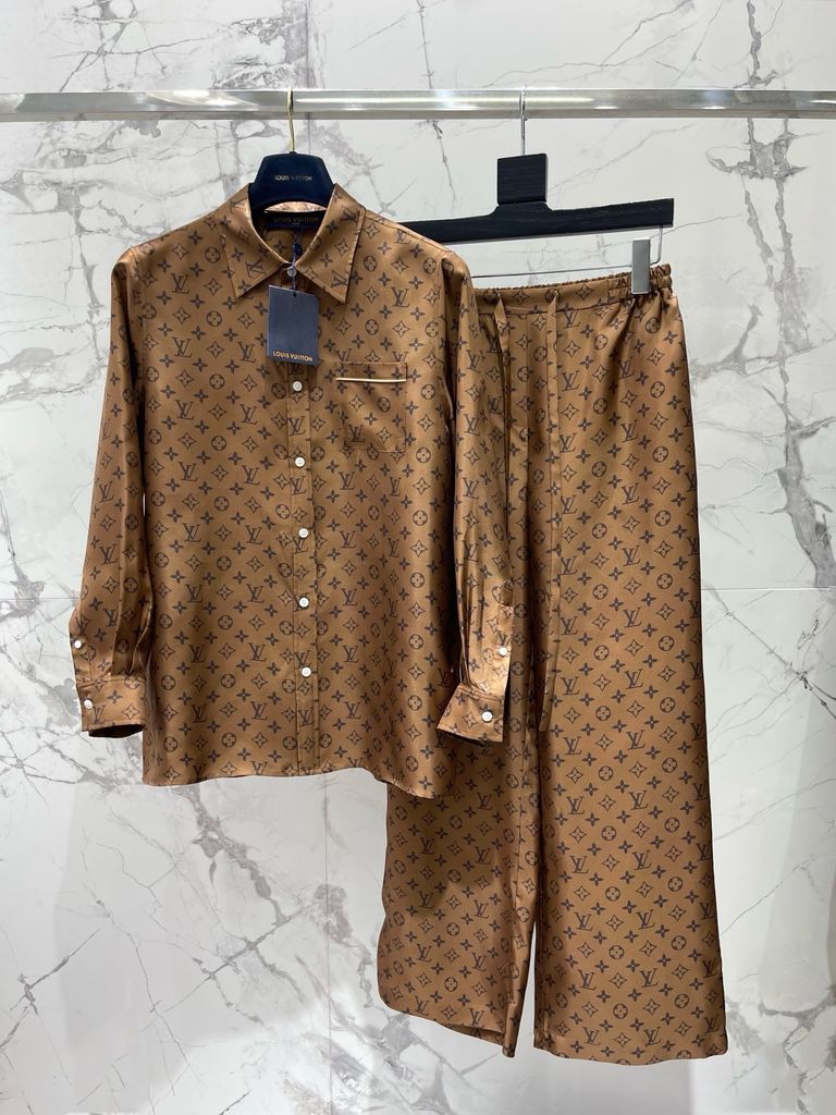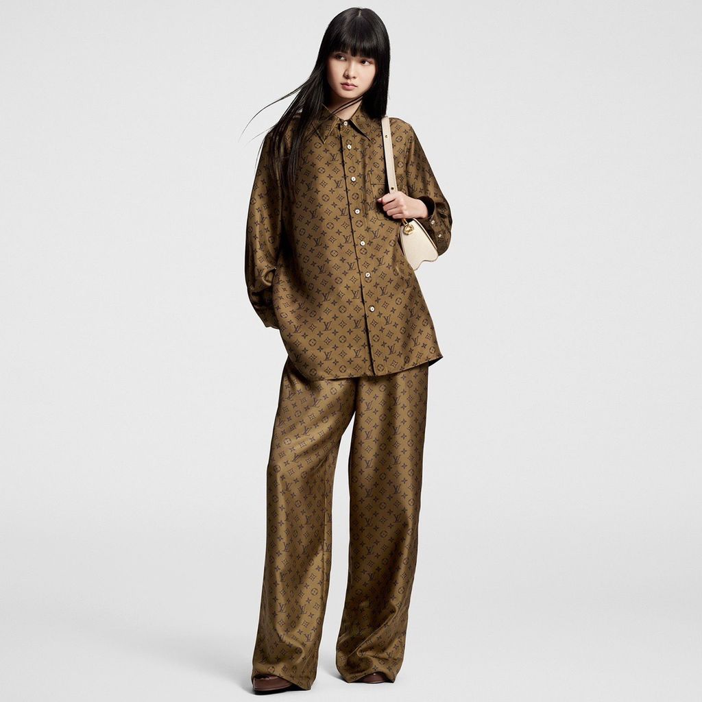 • Set áo + quần đồng bộ hoạ tiết Monogram biểu tượng, tạo hiệu ứng thị giác sang và cuốn.