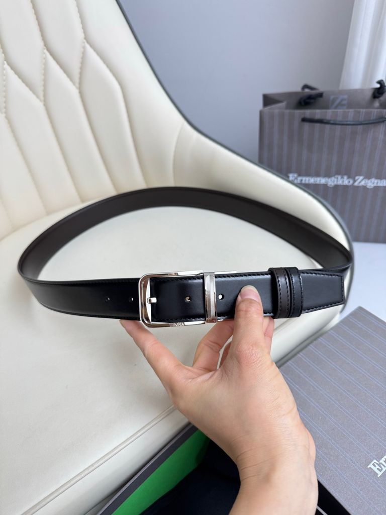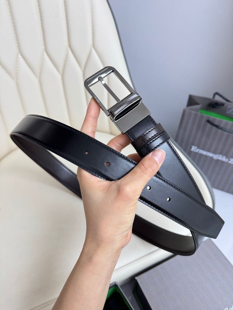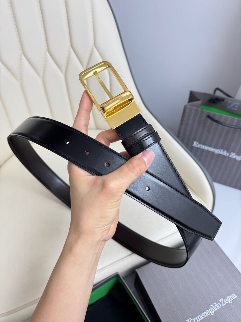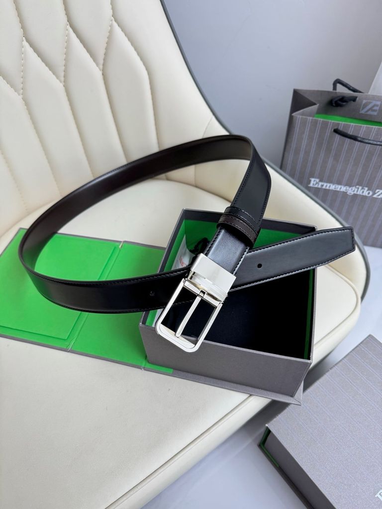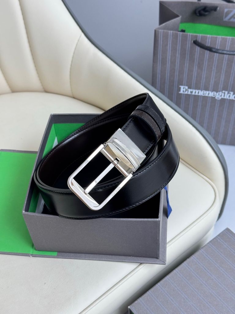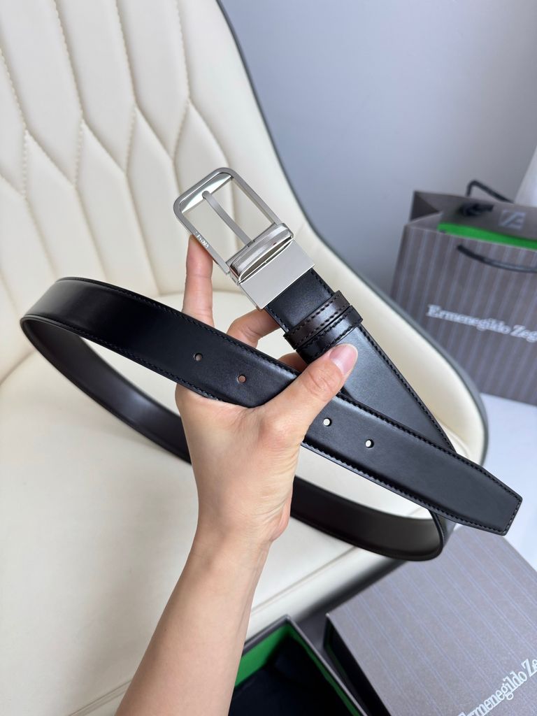 Một mẫu thắt lưng 2 mặt theo tinh thần tối giản sang, lên đồ gọn gàng mà vẫn tạo điểm nhấn rõ nét ở phần khóa xoay kim loại hoàn thiện sắc sảo. Dòng thắt lưng reversible của ZEGNA trên website hãng nổi bật ở bề rộng 3.5cm, thiết kế đảo mặt linh hoạt, da bê cao cấp và phần khóa kim loại hoàn thiện tinh tế.