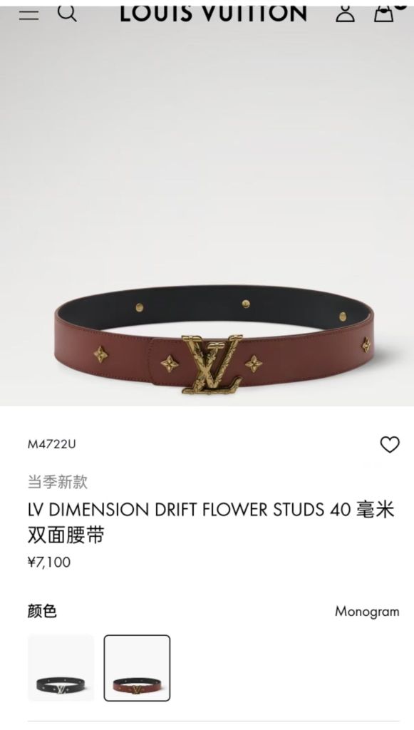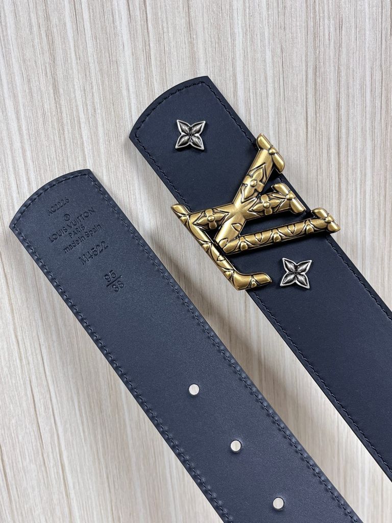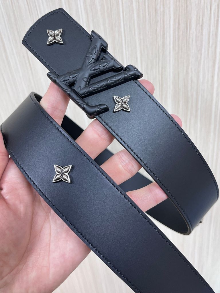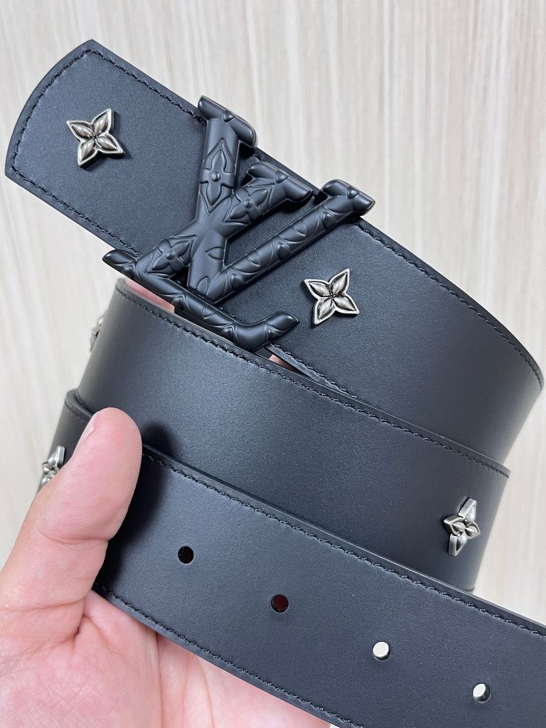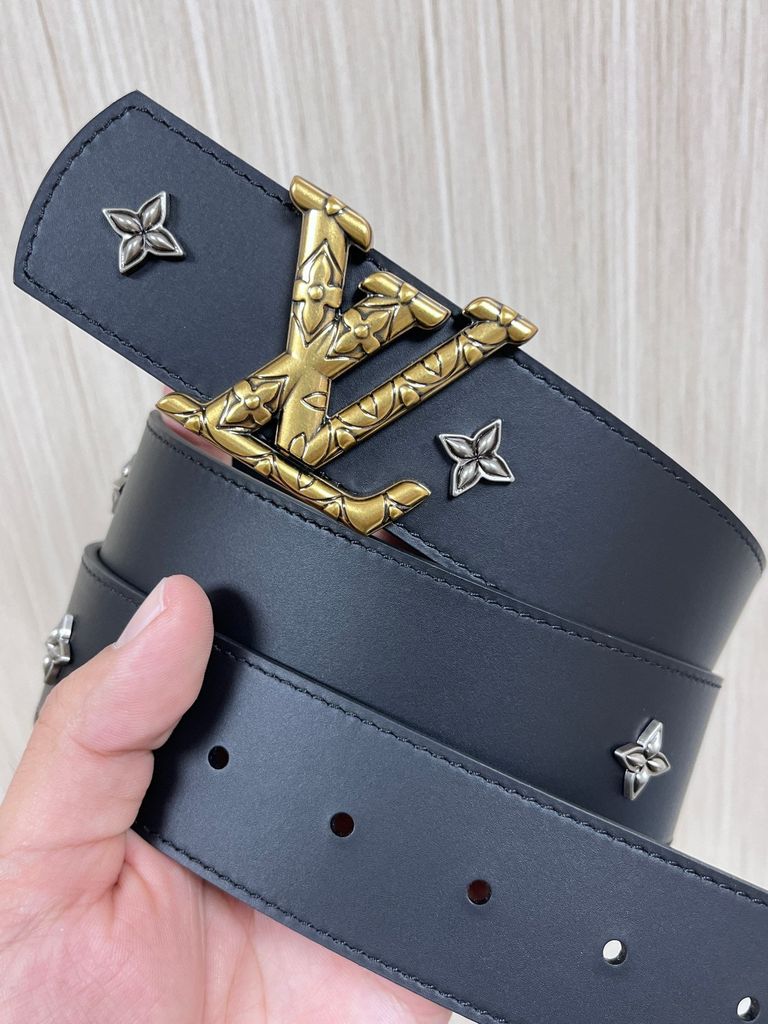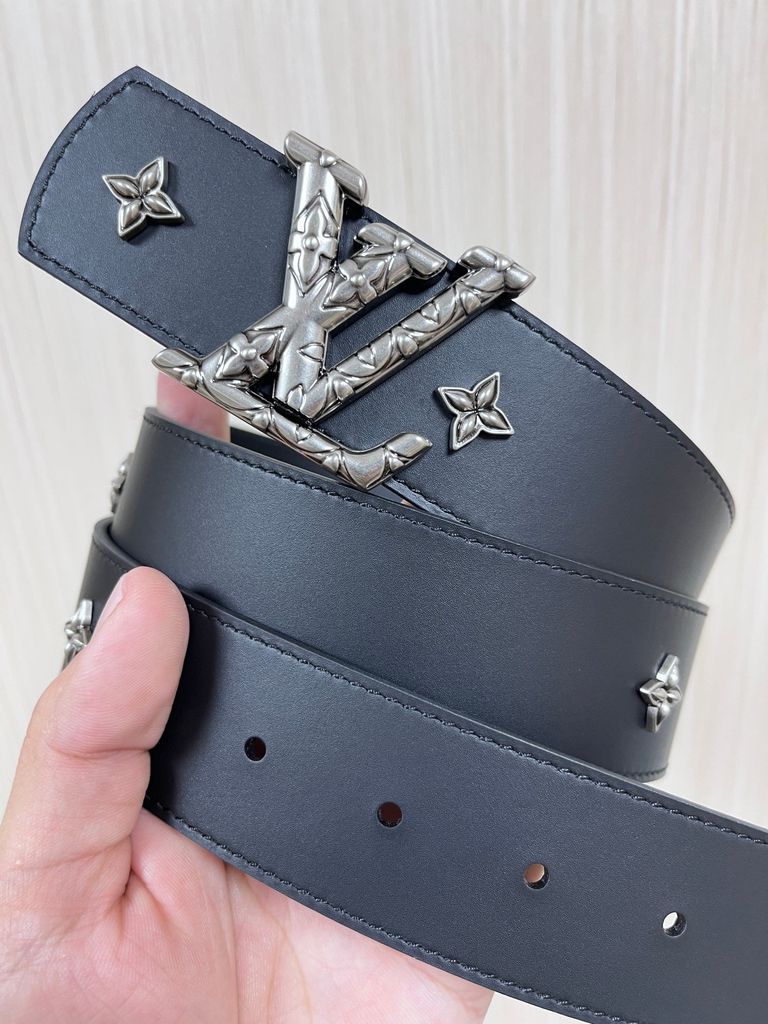 THẮT LƯNG UNISEX L V DIMENSION DRIFT FLOWER STUDS 2 MẶT BẢN 4.0CM – ĐINH TÁN HOA MONOGRAM & ĐINH TRÒN KHẮC CHỮ 1150k (HÀNG ORDER QUỐC TẾ)
