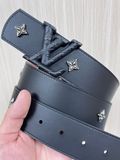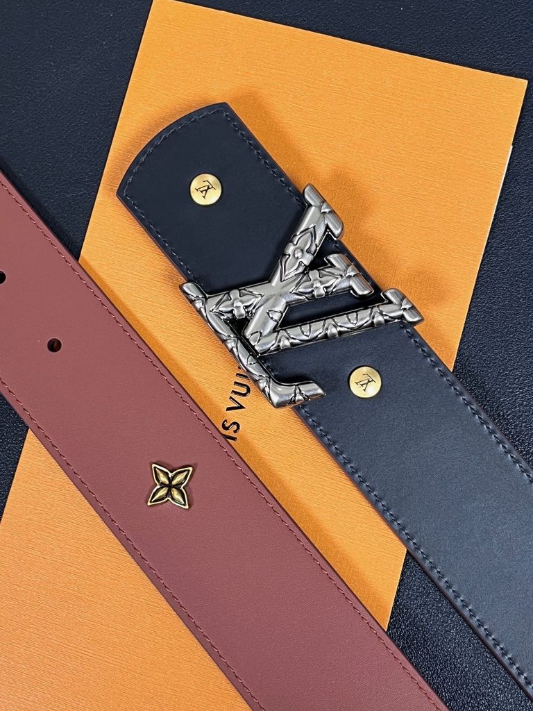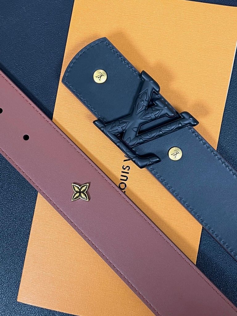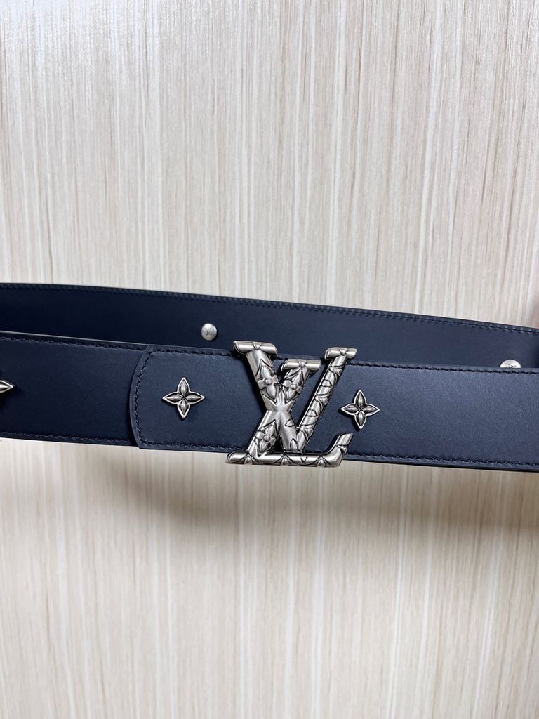 THẮT LƯNG UNISEX L V DIMENSION DRIFT FLOWER STUDS 2 MẶT BẢN 4.0CM – ĐINH TÁN HOA MONOGRAM & ĐINH TRÒN KHẮC CHỮ