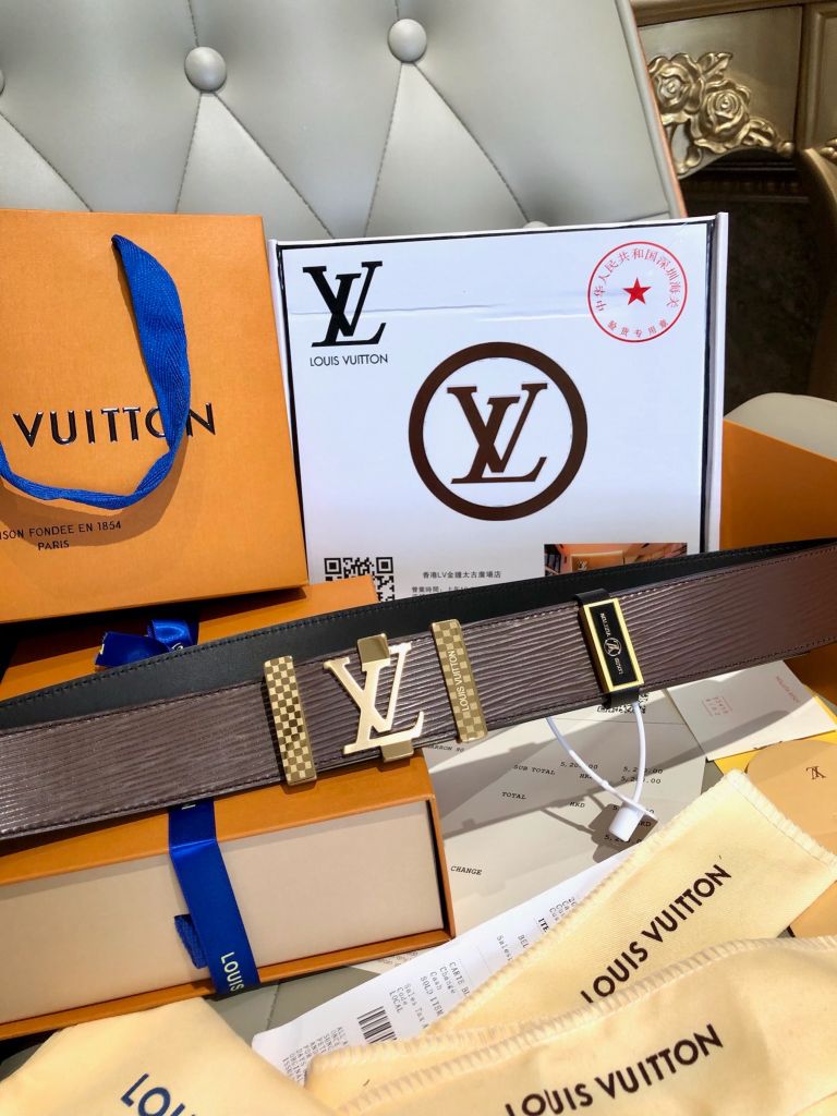THẮT LƯNG NAM L V KHÓA CHỮ ICONIC, DA BÊ TẦNG 1 VÂN NỔI, DÂY 2 MẶT BẢN 3.8CM 1150k (HÀNG ORDER QUỐC TẾ)