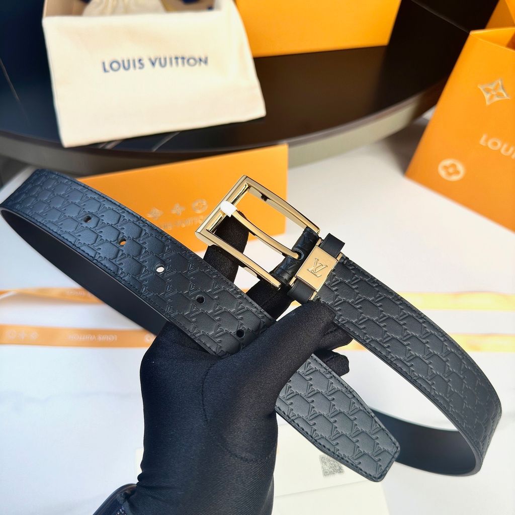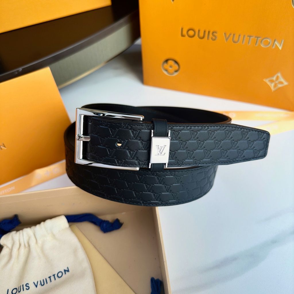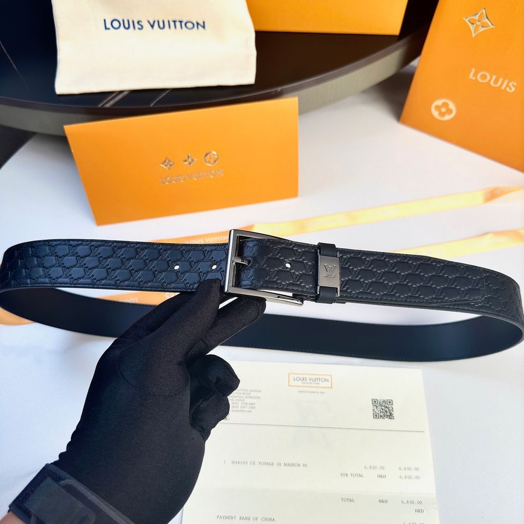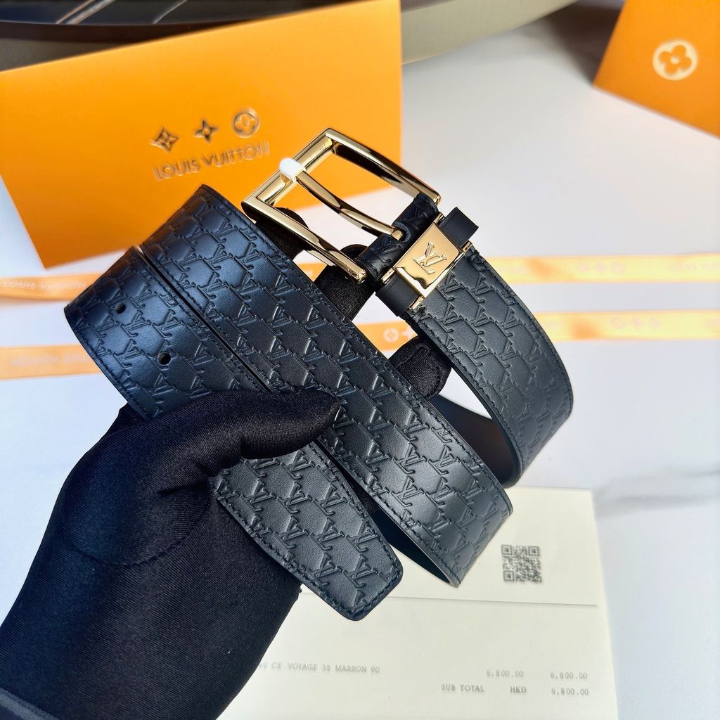 THẮT LƯNG NAM L V BẢN 3.5CM – DA BÊ NHẬP CAO CẤP, DẬP HỌA TIẾT LOGO TINH TẾ, KHÓA KIM PIN CLASSIC 1000k (HÀNG ORDER QUỐC TẾ)