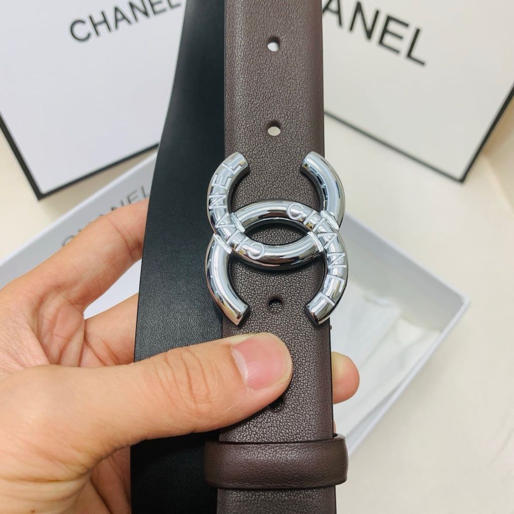• Mặt khóa tròn ánh vàng chạm khắc chi tiết dạng dây xích, logo 2 chữ C kinh điển tạo điểm nhấn nổi bật ngay vị trí eo.