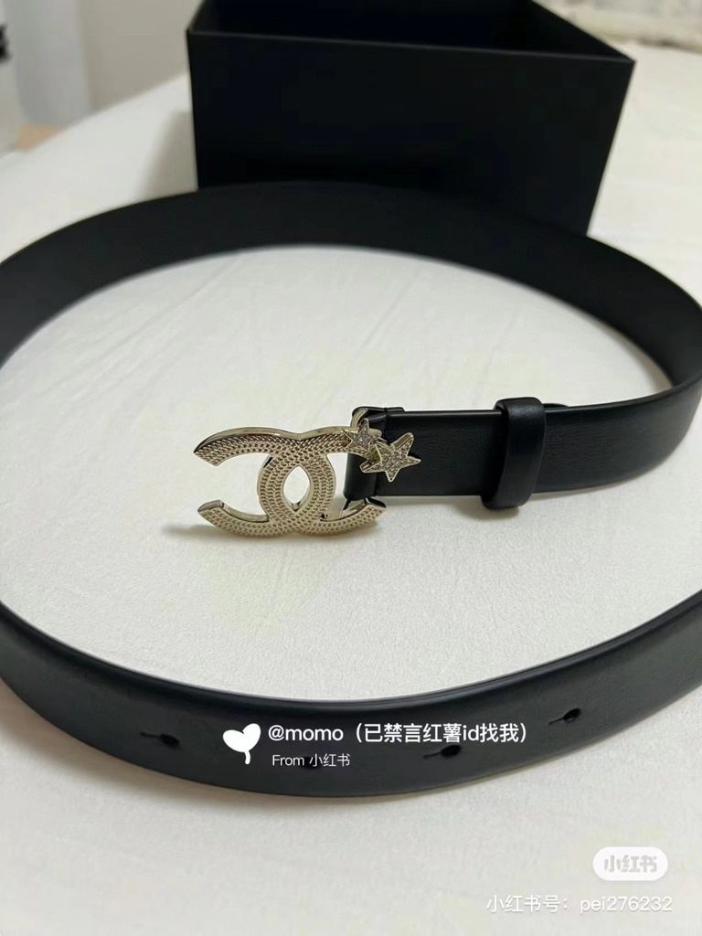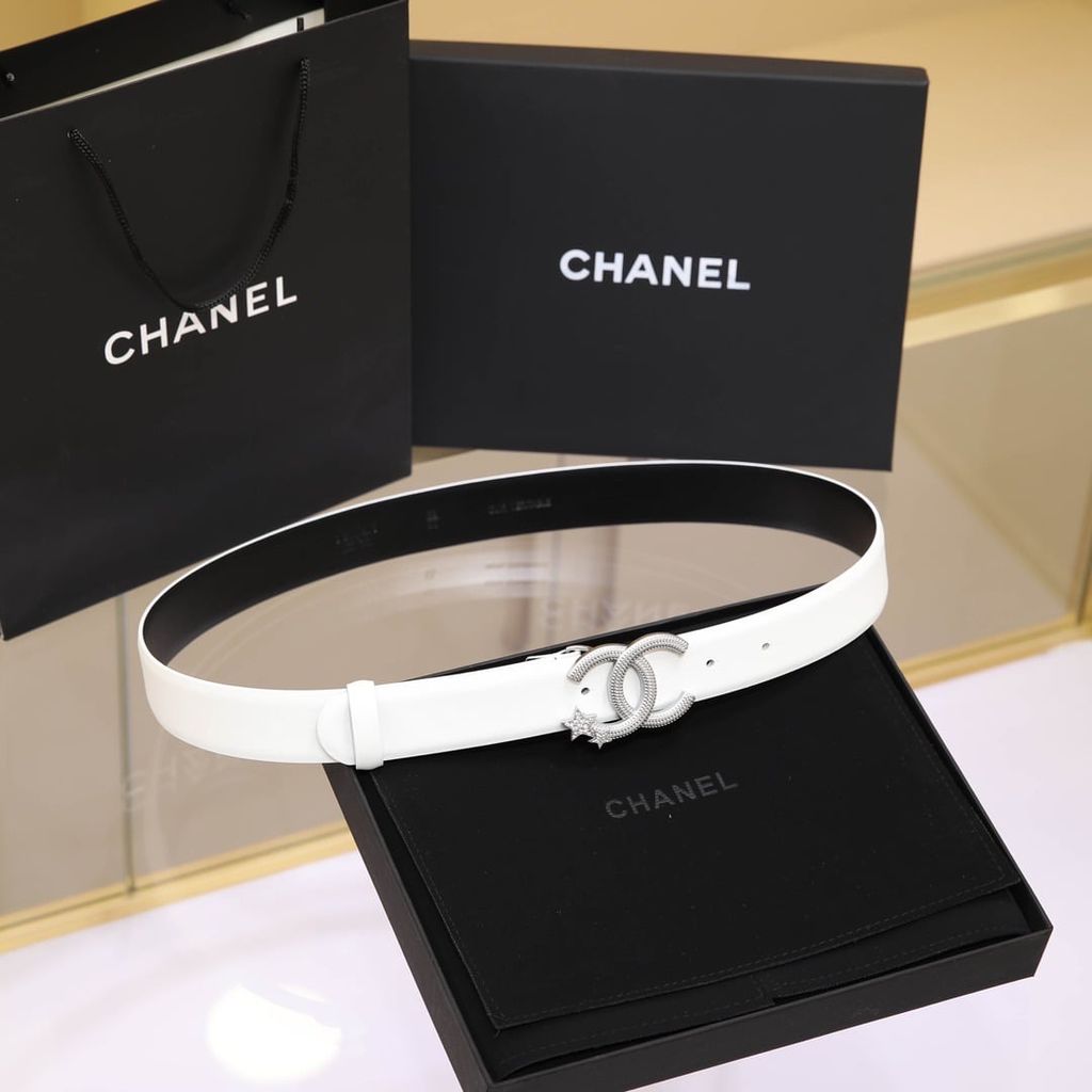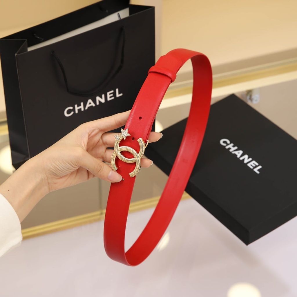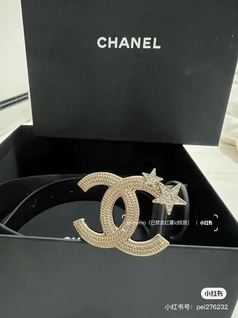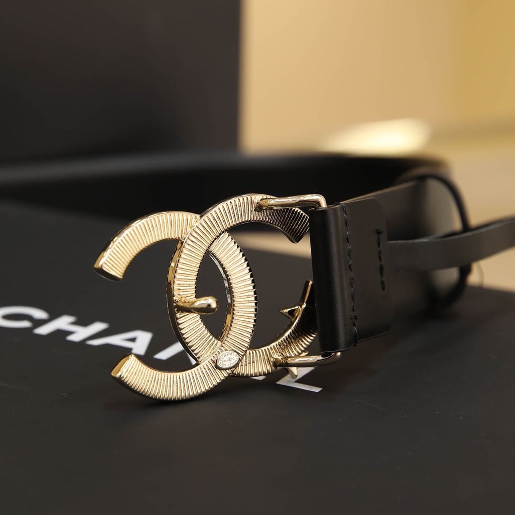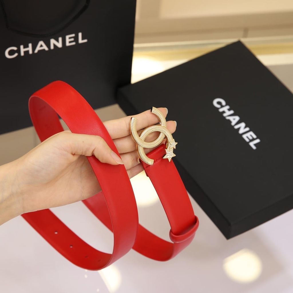Một mẫu thắt lưng nữ nổi bật ngay từ phần khóa CC đính sao, lên dáng rất cuốn và tạo điểm nhấn tinh tế cho tổng thể trang phục.