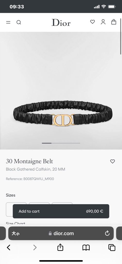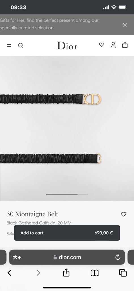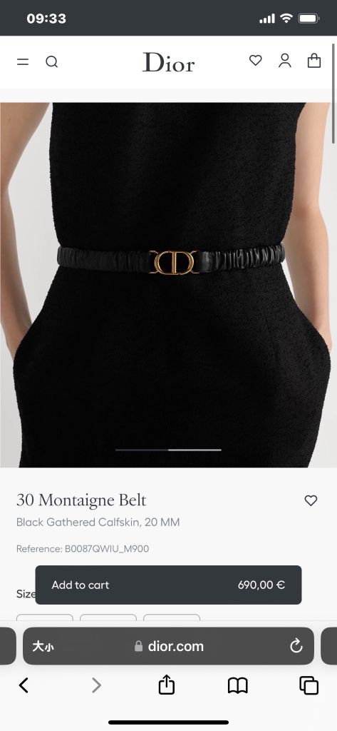 THẮT LƯNG NỮ DR 30 MONTAIGNE BẢN 20MM – DA BÊ NHÚN ÔM EO, KHÓA CD ÁNH VÀNG 1050K (HÀNG ORDER QUỐC TẾ)*