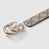• Dây belt thiết kế 2 mặt: một mặt họa tiết GG canvas kinh điển, một mặt da trơn nâu ấm – xoay mặt nào cũng đẹp, tiện lợi đổi phong cách chỉ trong một thao tác.