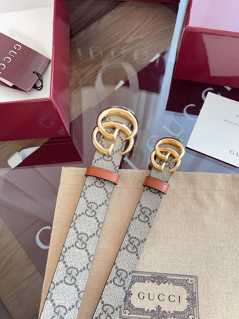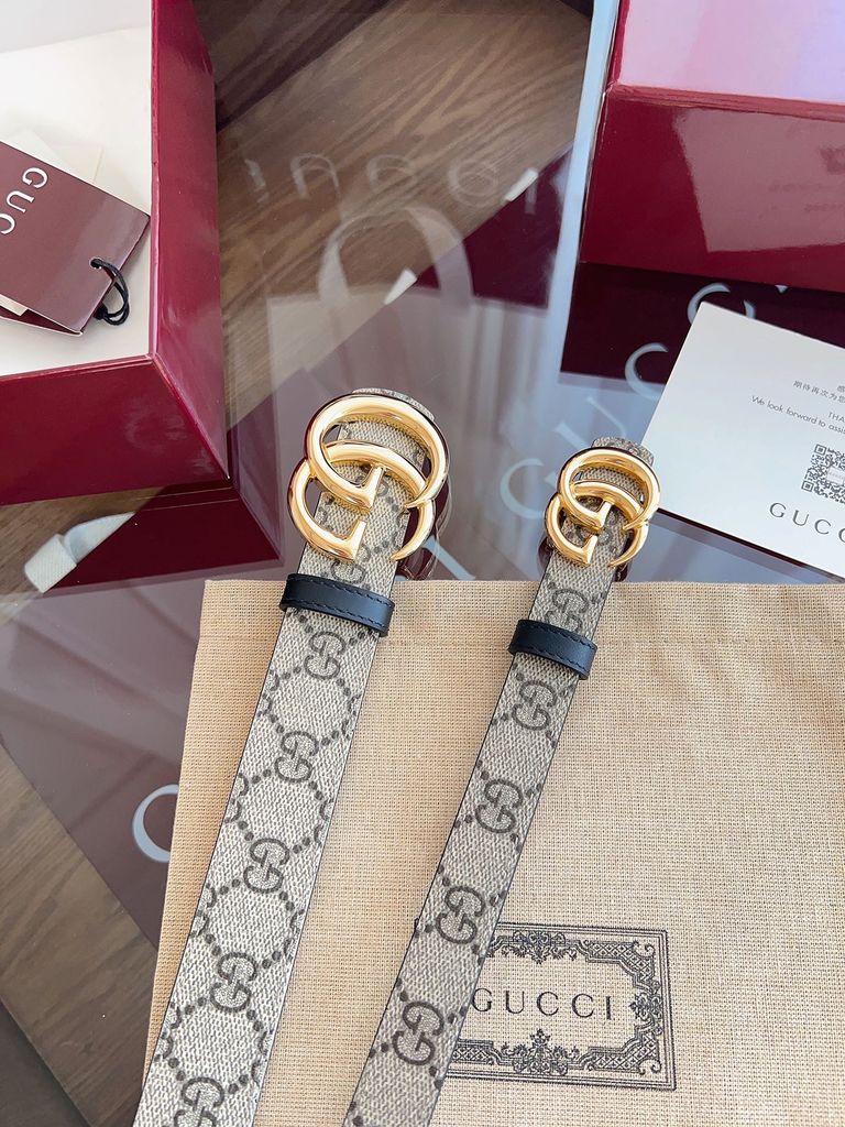 THẮT LƯNG NỮ GUCC* 3.0cm GG CANVAS 2 MẶT DA NÂU SANG TRỌNG 1000k (HÀNG ORDER QUỐC TẾ)