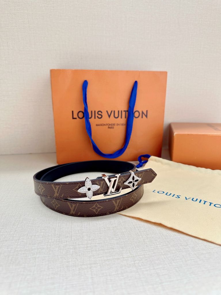 THẮT LƯNG NỮ L V BẢN 2.0CM PHỐI CANVAS MONOGRAM 2 MẶT – KHÓA LV CIRCLE ĐÍNH ĐÁ SANG TRỌNG 1050k (HÀNG ORDER QUỐC TẾ)