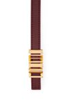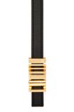 Một điểm nhấn nhỏ nhưng đủ làm tổng thể “lên hạng”: bản mảnh tôn eo, khóa kim loại xếp tầng hình học tạo hiệu ứng sang gọn và hiện đại.