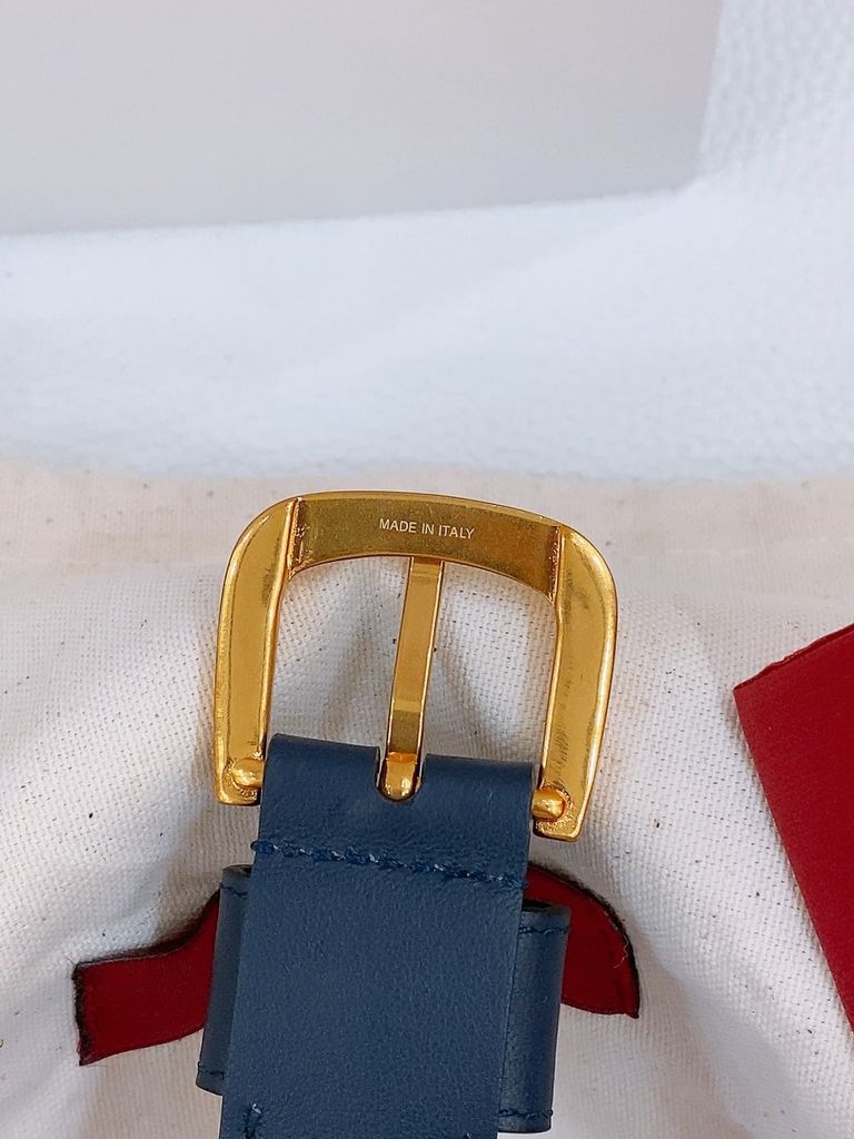• Thiết kế & dấu ấn: Dây dệt sọc xanh–trắng hiện đại; khoá kim VLogo mạ vàng ánh sang trọng; đầu đai bọc da ton-sur-ton, đường may gọn sắc nét.