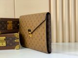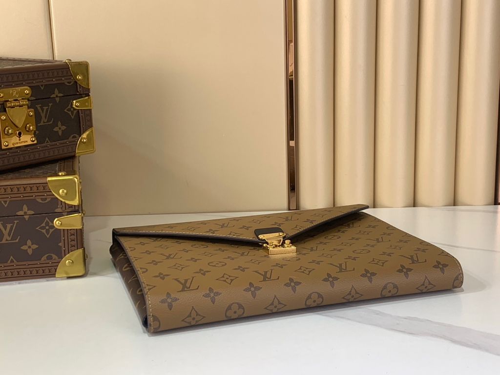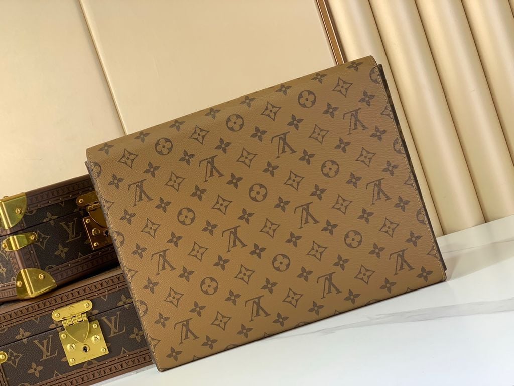 Thiết kế “cầm lên là thấy đẳng cấp” dành cho ai thích phong thái gọn gàng nhưng vẫn nổi bật: dáng phong thư thanh lịch, hoạ tiết Monogram Reverse biểu tượng và điểm khóa vàng tạo hiệu ứng sang rõ rệt khi lên tay.