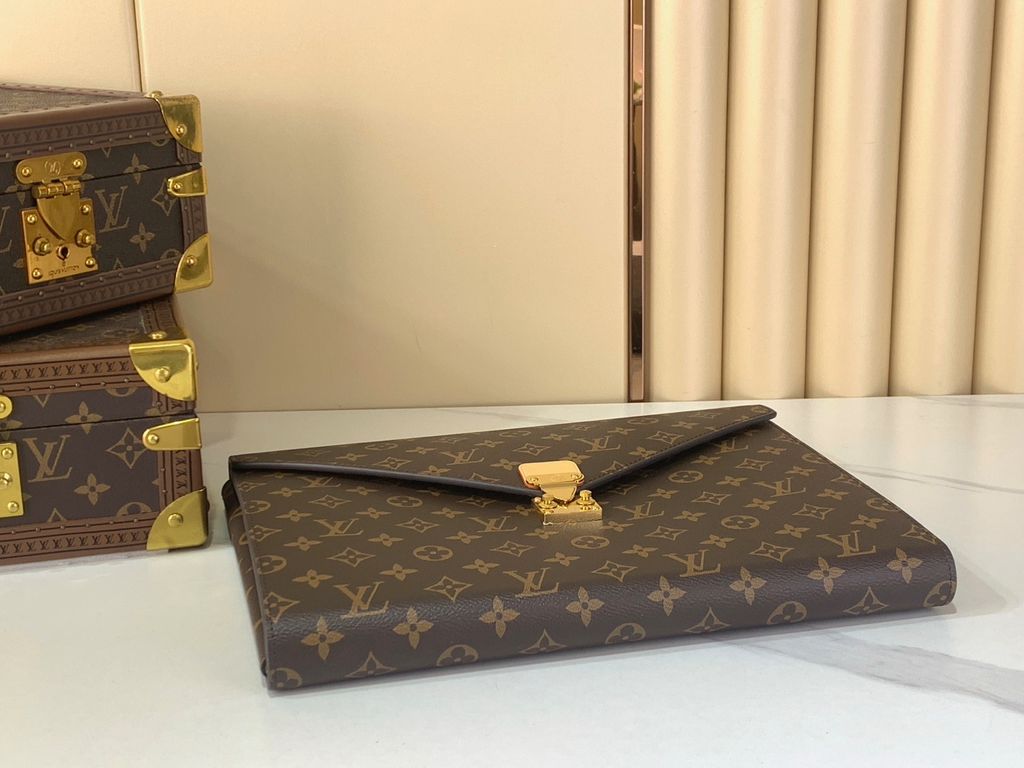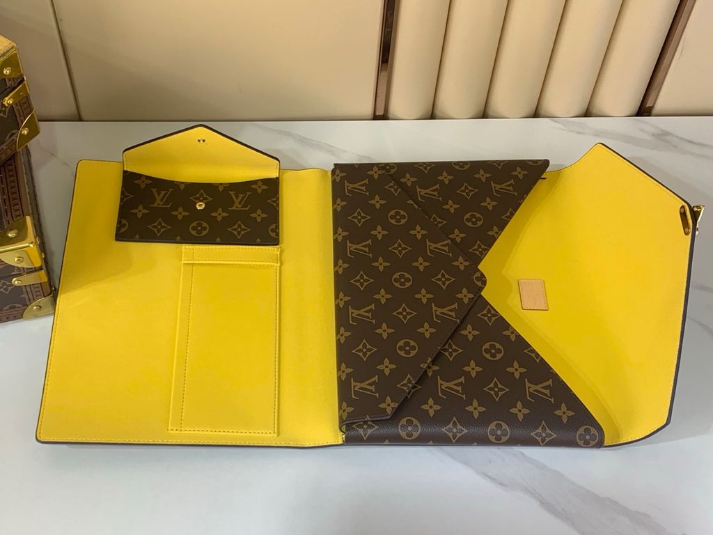 CLUTCH FILE UNISEX L V MARK FOLDER MONOGRAM REVERSE DÁNG PHONG THƯ KHÓA VÀNG SANG TRỌNG 3400k (HÀNG ORDER QUỐC TẾ)