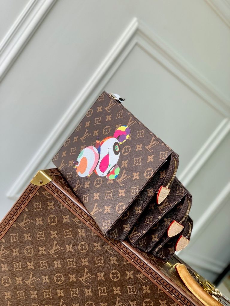 • Một bộ 3 pouch nghệ thuật nổi bật: họa tiết pop-art Murakami trên nền Monogram kinh điển, tạo điểm nhấn khác biệt trong mọi bối cảnh từ gặp gỡ đối tác đến sự kiện trang trọng.