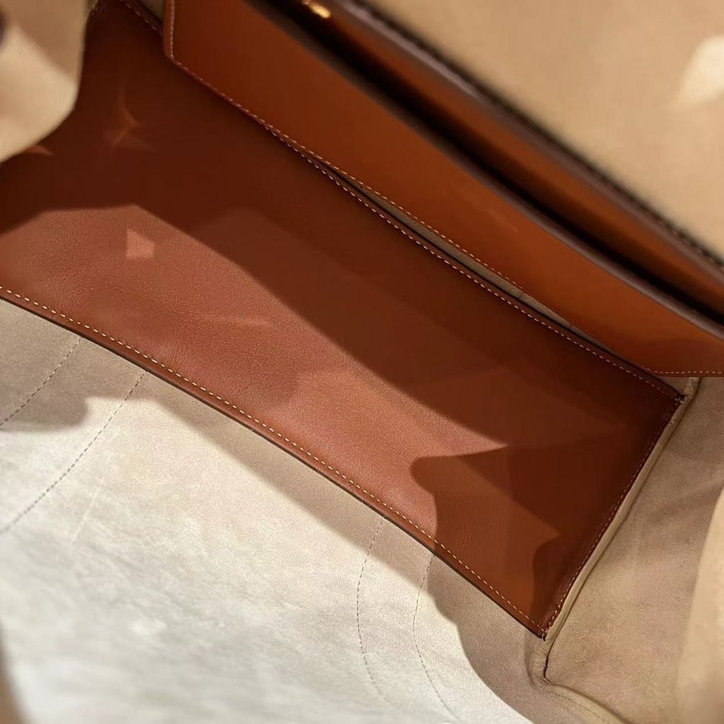 • Sắc nâu cognac sang trọng, phom top-handle chuẩn mực: lên tay gọn gàng mà nổi bật ngay lập tức.