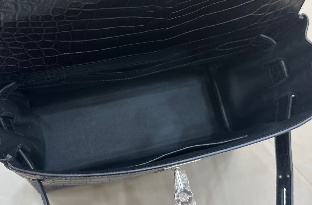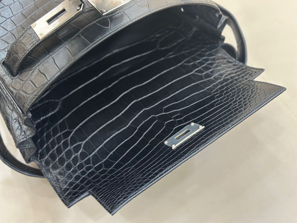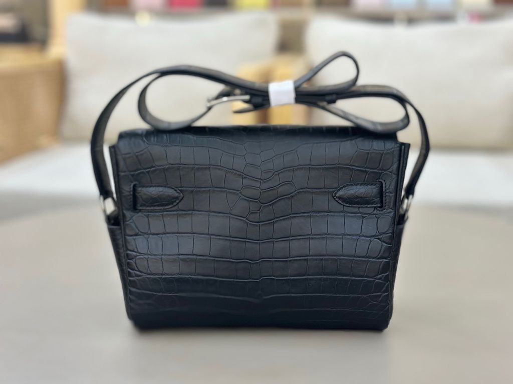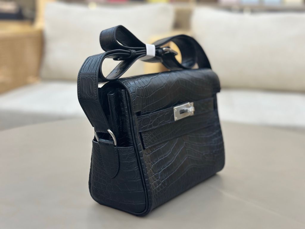 Một dáng Kelly hiếm gặp ở phom clutch đeo chéo: gọn gàng, “lạnh” và cực kỳ quyền lực. Càng nhìn càng thấy độ tinh xảo nằm ở bề mặt da và đường nét chuẩn chỉnh.