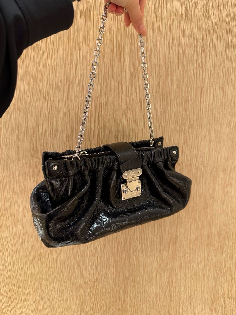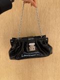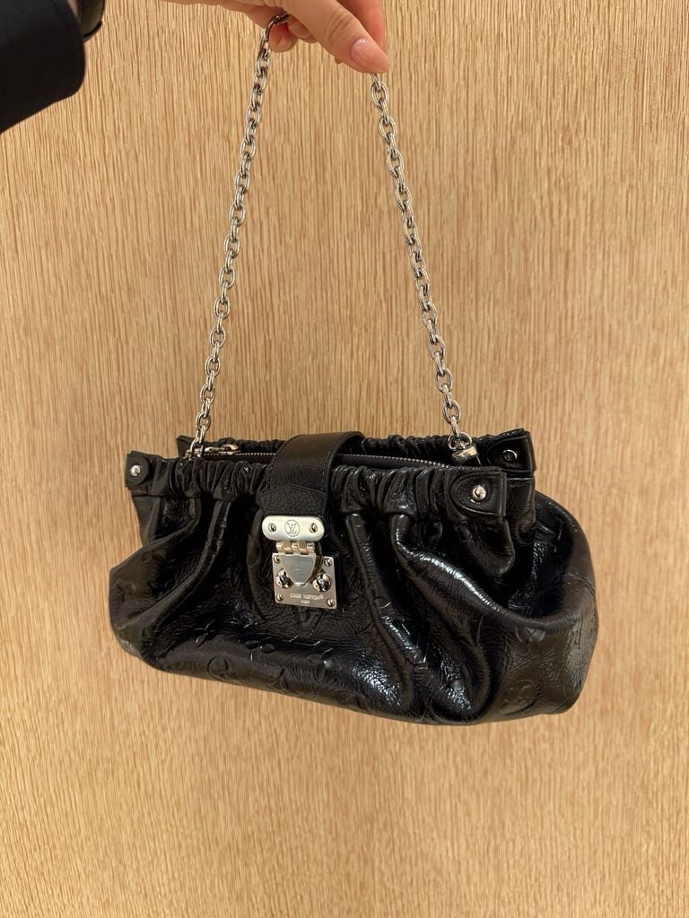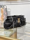 Một chiếc pochette nhỏ gọn nhưng “ra khí chất” ngay từ ánh nhìn: phom drape mềm, điểm khóa kim loại signature và dây xích tạo cảm giác vừa thời thượng vừa đắt giá — đúng gu tối giản sang trọng của giới sành đồ.