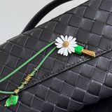 Một phiên bản clutch thượng hạng nổi bật bởi chi tiết hoa cúc men nổi đầy tính trang sức, đặt trên nền đan Intrecciato biểu tượng, tạo cảm giác thanh lịch nhưng vẫn đủ khác biệt để thu hút ngay từ ánh nhìn đầu tiên.