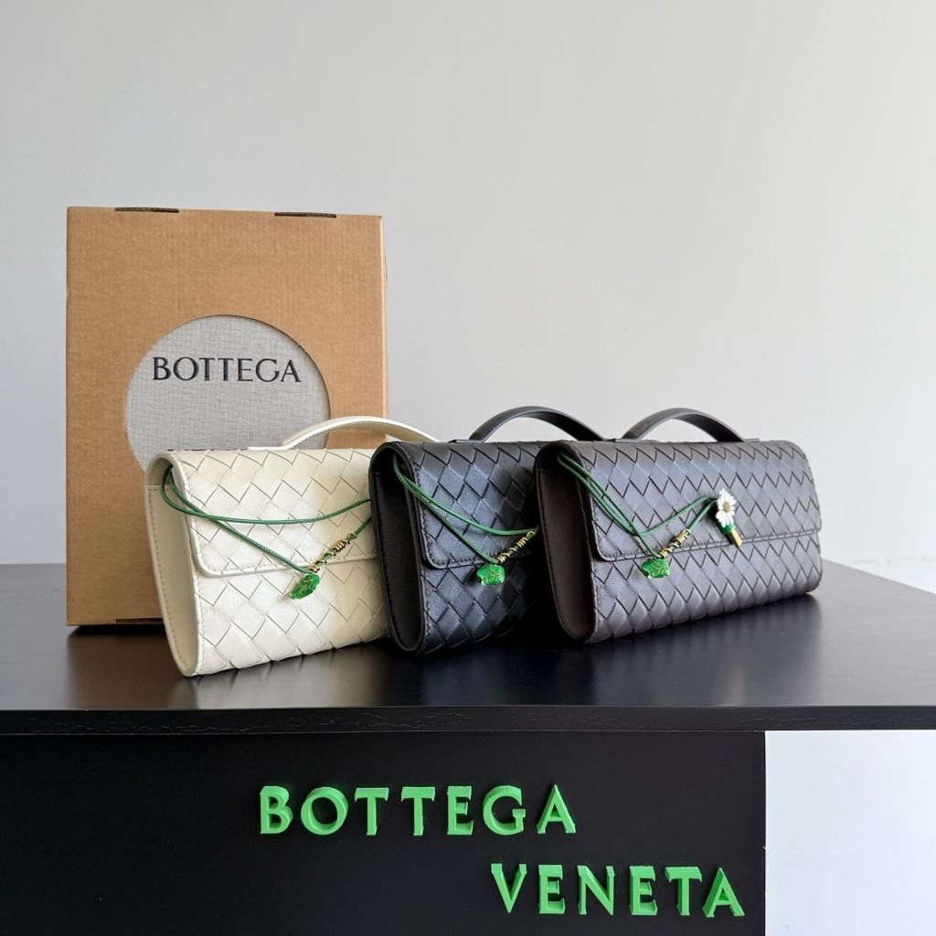 TÚI CẦM TAY NỮ BV ANDIAMO CLUTCH INTRECCIATO KHÓA HOA CÚC NGHỆ THUẬT (HÀNG ORDER QUỐC TẾ)