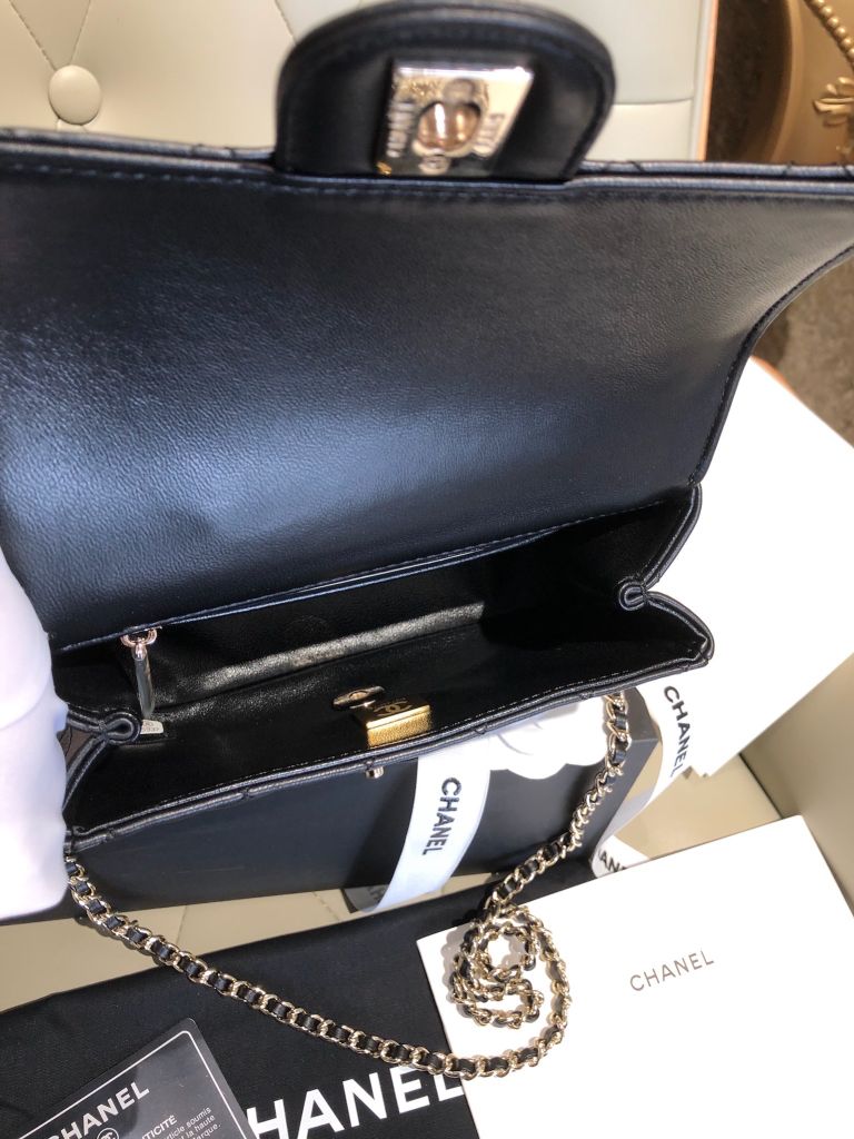 TÚI XÁCH NỮ CN TOP HANDLE FLAP QUILTED – TAY CẦM XÍCH ĐÍNH ĐÁ LẤP LÁNH, KHOÁ CC BIỂU TƯỢNG 19cm