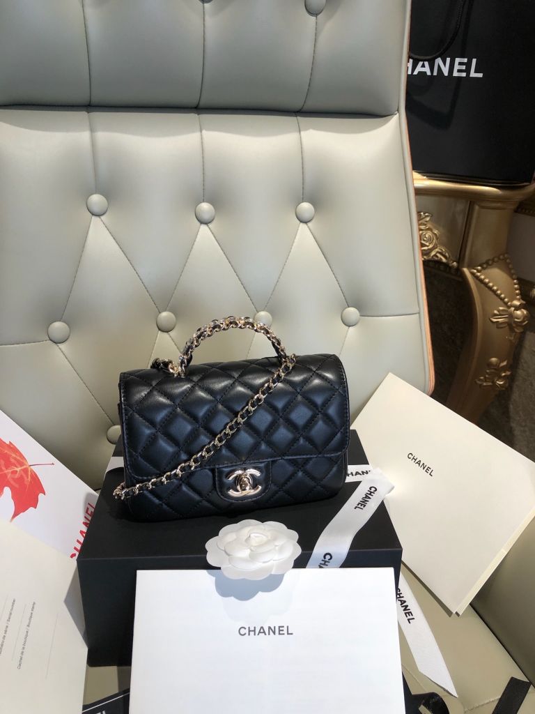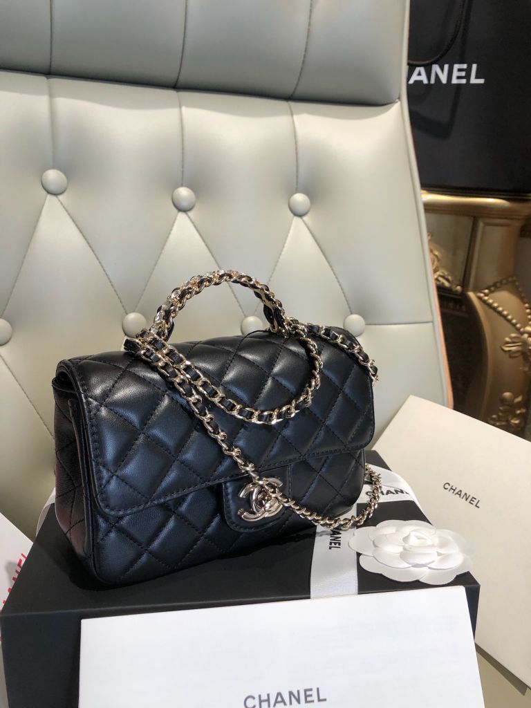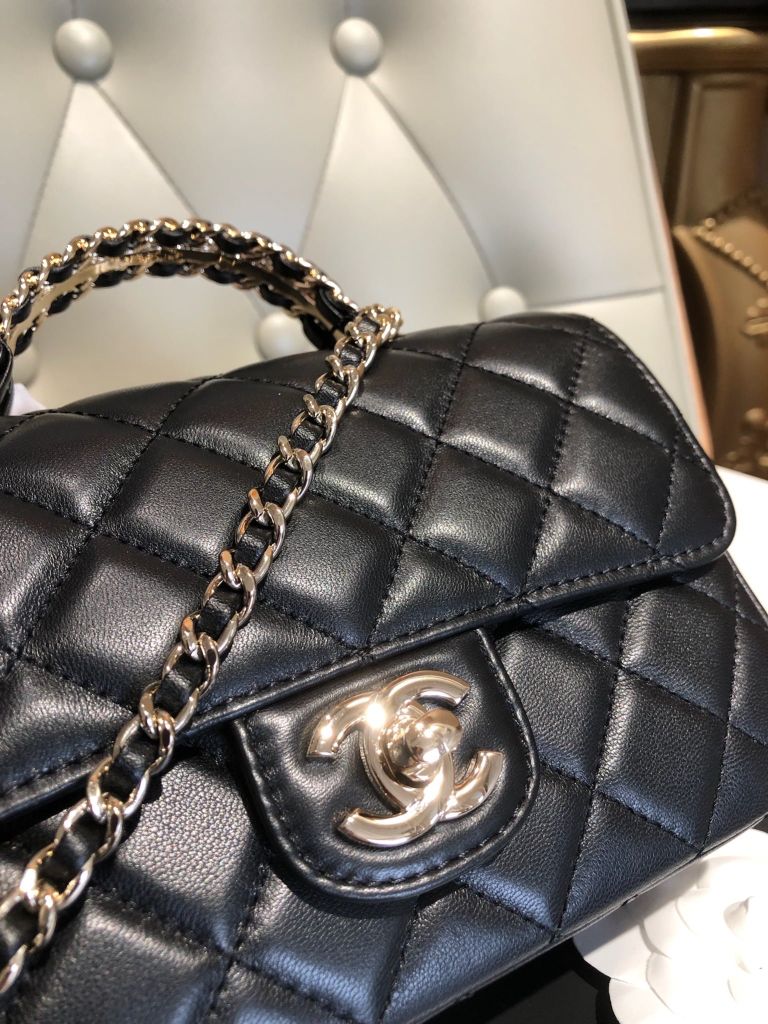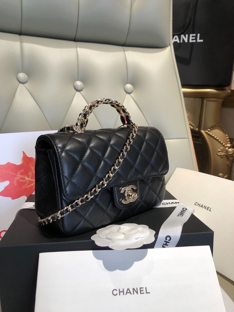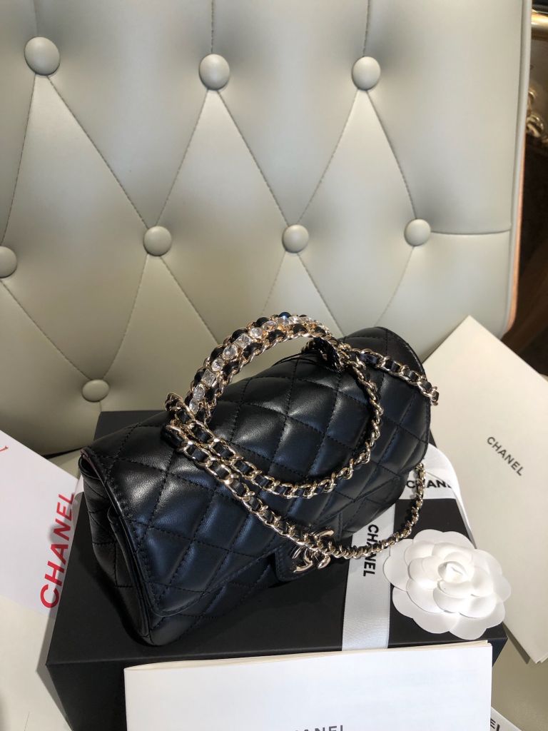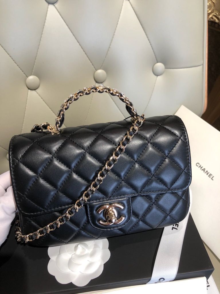 TÚI XÁCH NỮ CN TOP HANDLE FLAP QUILTED – TAY CẦM XÍCH ĐÍNH ĐÁ LẤP LÁNH, KHOÁ CC BIỂU TƯỢNG 19cm 4200k (HÀNG ORDER QUỐC TẾ)