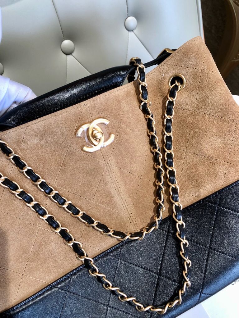 • Điểm hút mắt nằm ở cấu trúc phối chất liệu tương phản, kết hợp cùng bề mặt chần trám kinh điển, tạo chiều sâu thị giác rất sang và khác biệt.