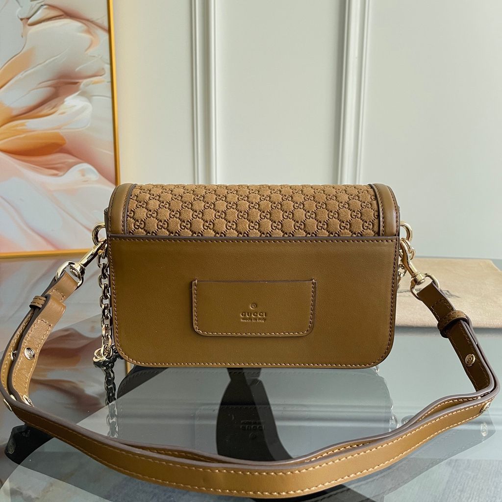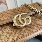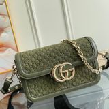 • Thân túi vải họa tiết GG dệt nổi sắc nét, bề mặt đứng phom, nhìn cận vẫn đẹp.