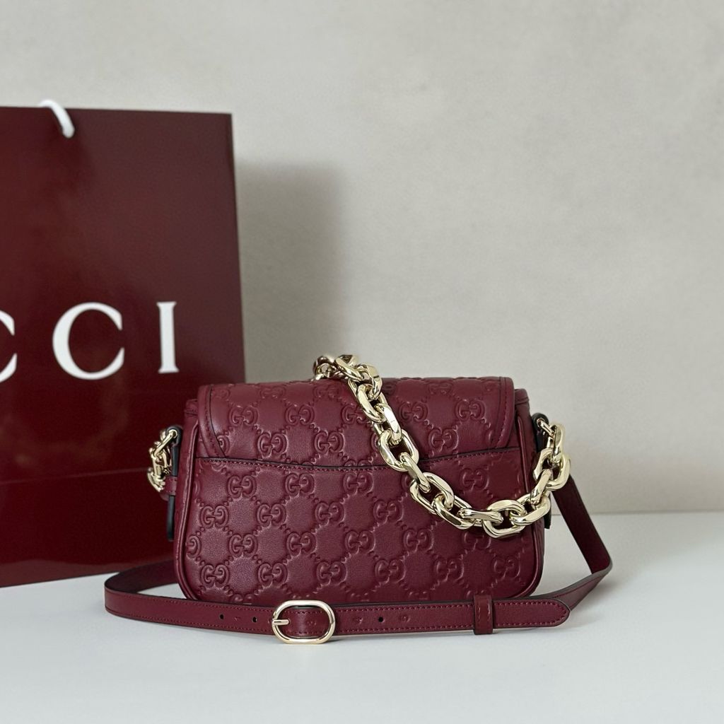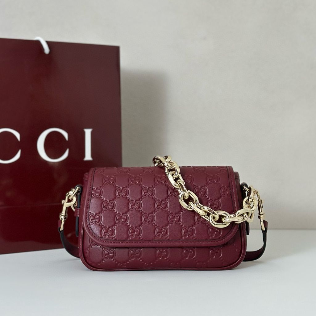 TÚI XÁCH NỮ GUCC* MONOGRAM DẬP NỔI MÀU RƯỢU VANG, DÂY XÍCH NỔI BẬT 3300k
