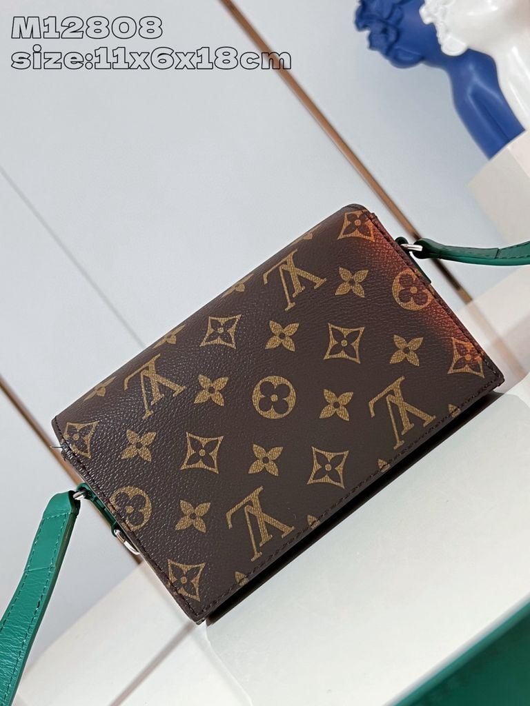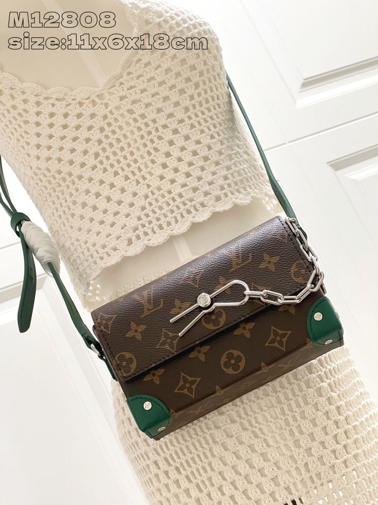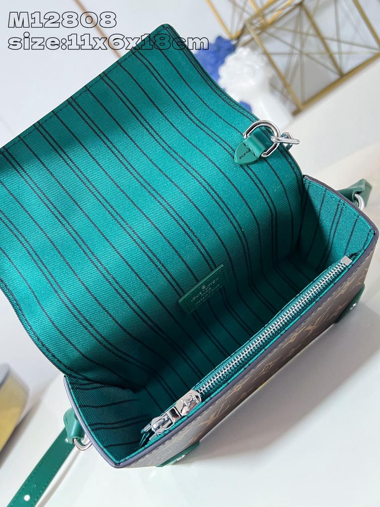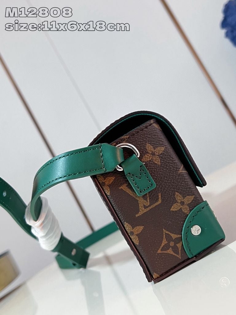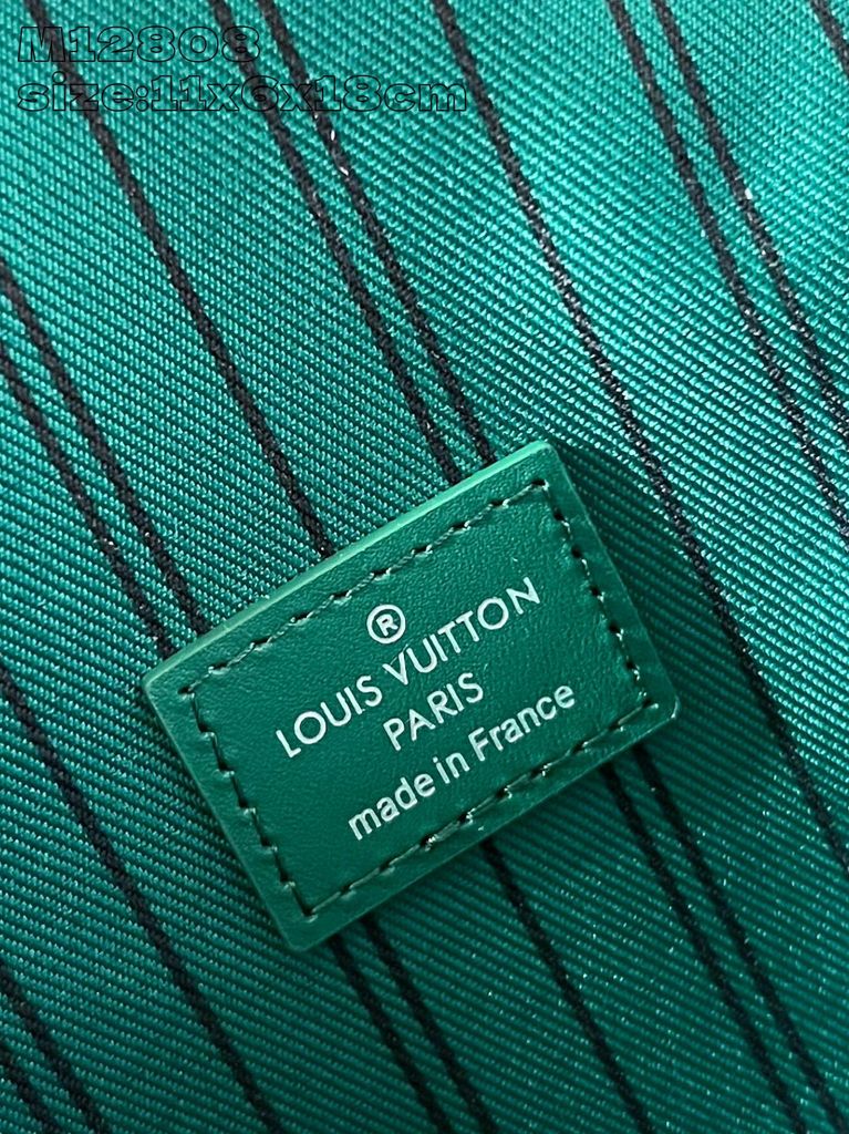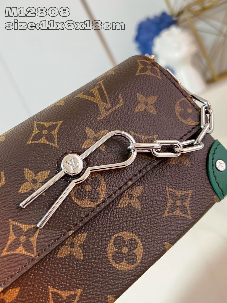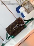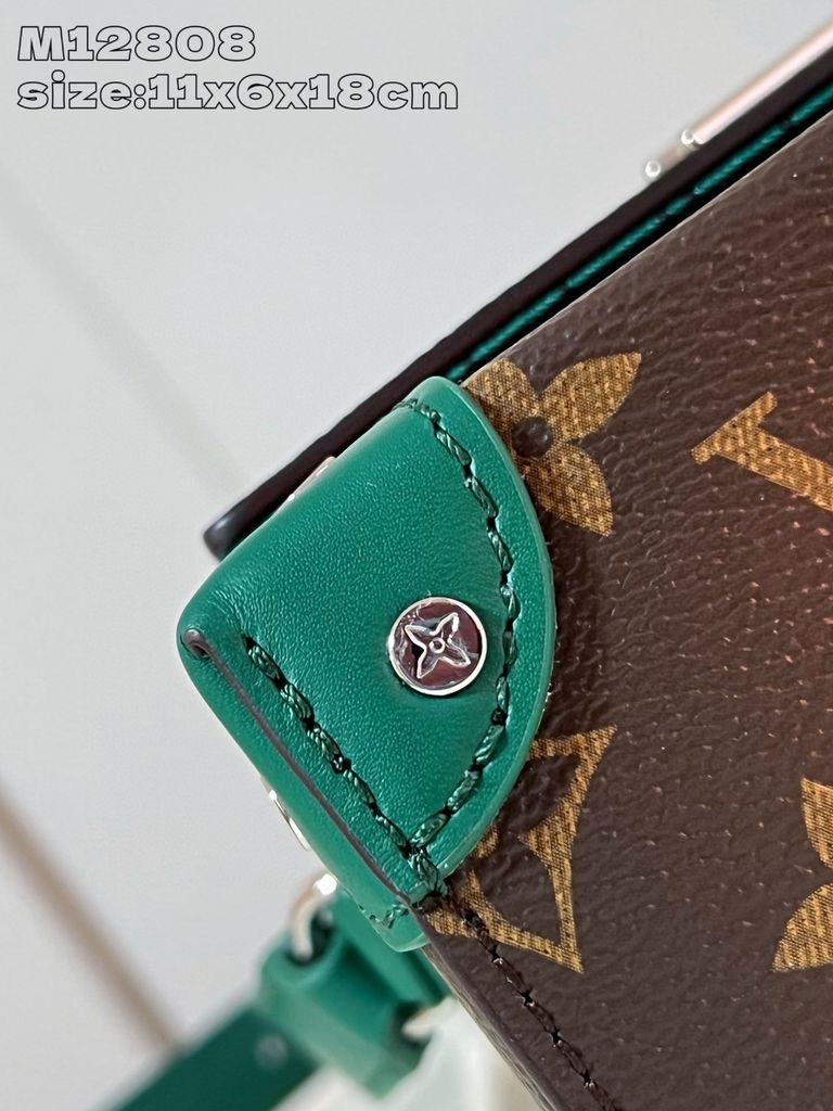 Chất liệu là vải canvas tráng Monogram Macassar, giúp tăng thêm màu sắc rực rỡ cho các góc được gia cố, dây đeo vai có thể điều chỉnh và lớp lót vải sọc. Việc đóng chốt và dây xích là sự tiếp nối của túi Steamer. 11x6.5x18 cm (cao x rộng x dài