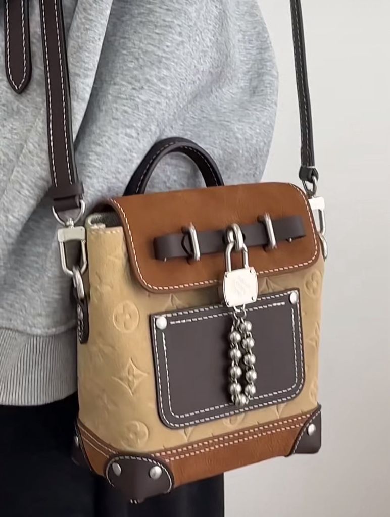 TÚI XÁCH UNISEX L V STEAMER 15 PHỐI CHẤT LIỆU DẬP NỔI – SIGNATURE MARQUE DEPOSÉE 3650K (HÀNG ORDER QUỐC TẾ)