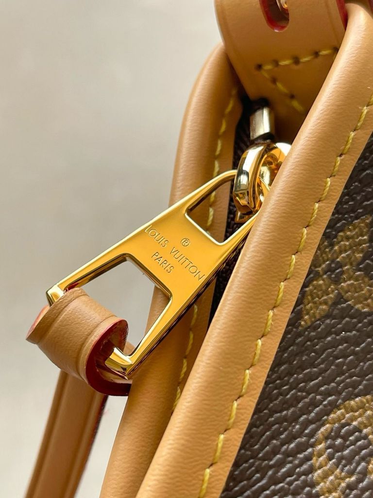 • Thân canvas Monogram phối viền da, giữ phom đẹp và bền dáng theo thời gian.