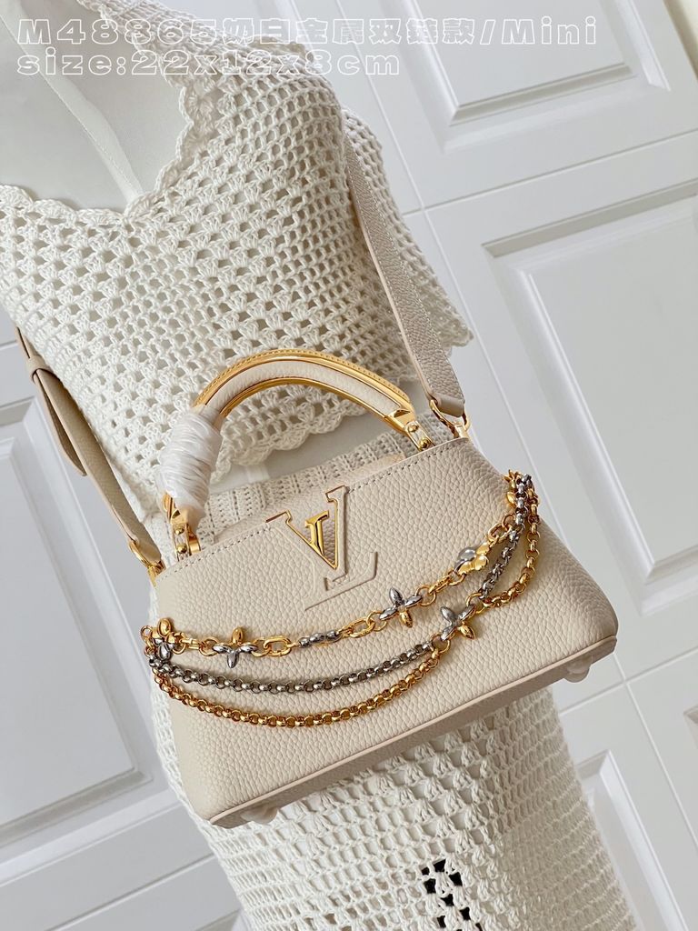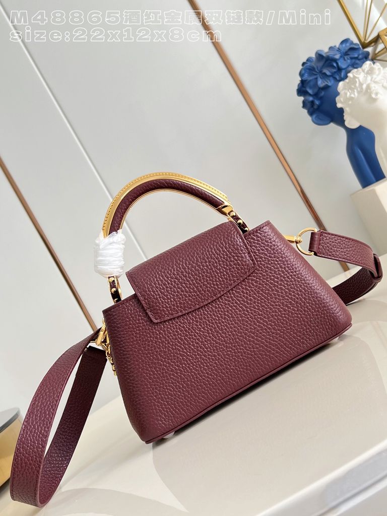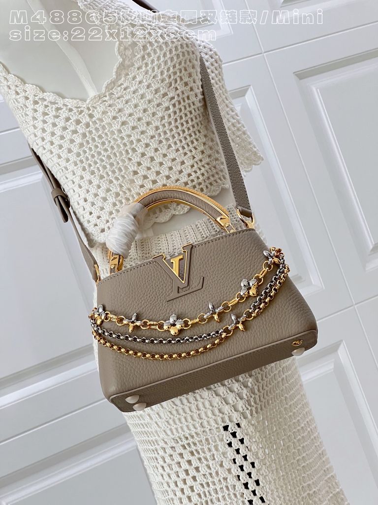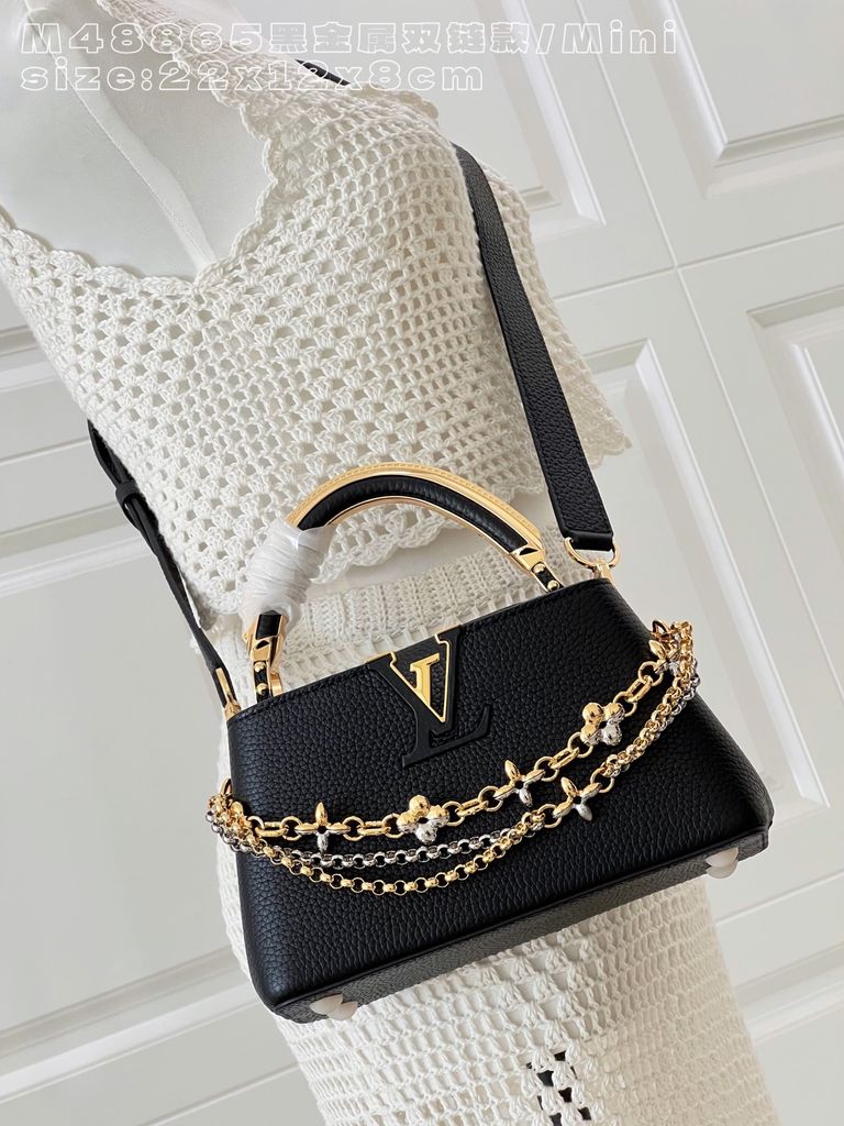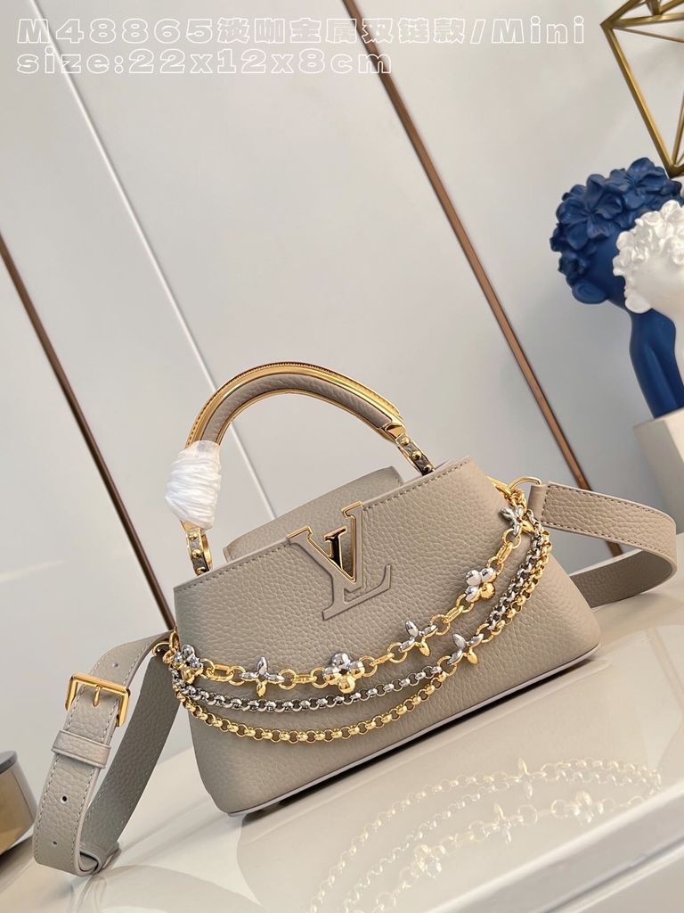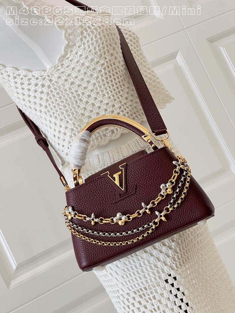 TÚI XÁCH NỮ L V CAPUCINES EAST WEST MINI – DÁNG 22CM THANH LỊCH, QUAI KIM LOẠI SANG TRỌNG, ĐIỂM NHẤN BIỂU TƯỢNG LV