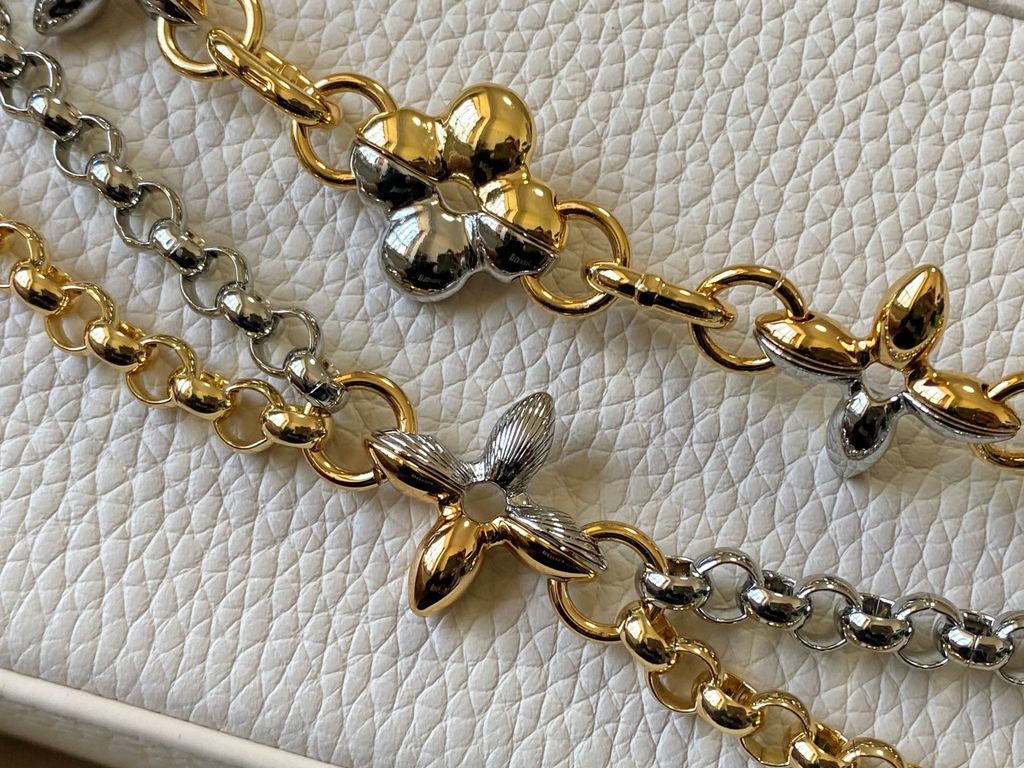 • Chi tiết chữ cái kim loại bản lớn kết hợp họa tiết monogram hoa bốn cánh, hoàn thiện tổng thể tinh gọn mà khác biệt