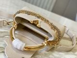 • Quai ngang điểm chi tiết kim loại biểu tượng, sáng nổi trên nền da kem, nhìn là thấy “chất” sang đặc trưng.