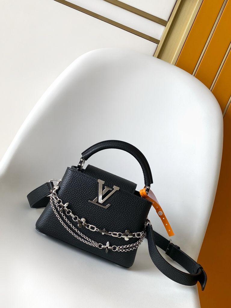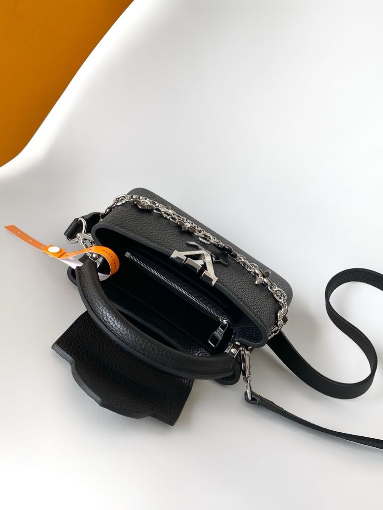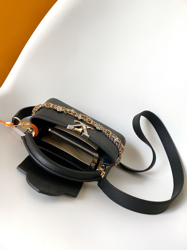 TÚI XÁCH NỮ L V CAPUCINES MINI – BIỂU TƯỢNG THANH LỊCH, DÂY XÍCH TRANG SỨC SANG TRỌNG, PHẦN CỨNG KIM LOẠI HAI TONE 21cm 6200k (HÀNG ORDER QUỐC TẾ)