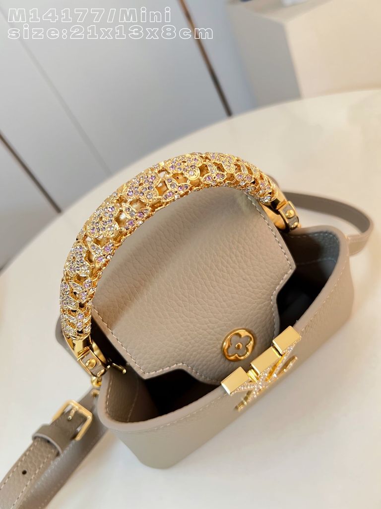 TÚI XÁCH NỮ L V CAPUCINES MINI EXCEPTIONALS – QUAI FLOWER CROWN ĐÍNH ĐÁ LẤP LÁNH, BIỂU TƯỢNG CHỮ CÁI NỔI BẬT