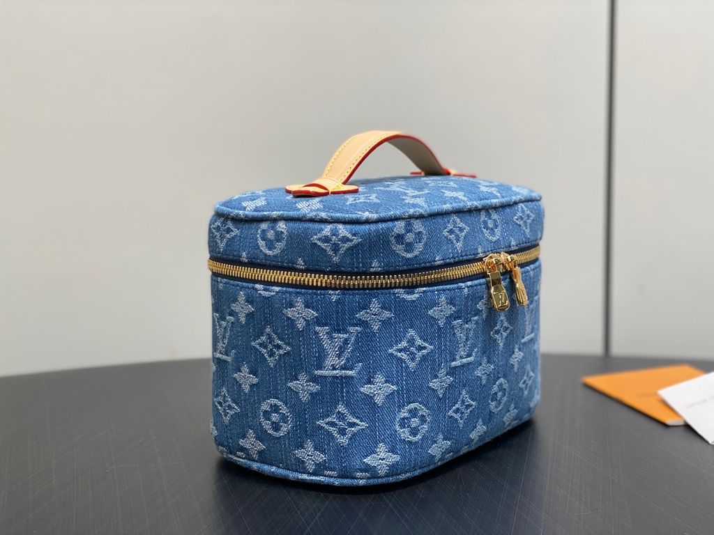 TÚI MỸ PHẨM NỮ L V NICE MINI MONOGRAM DENIM DÁNG VANITY SANG GỌN 2100k (HÀNG ORDER QUỐC TẾ)