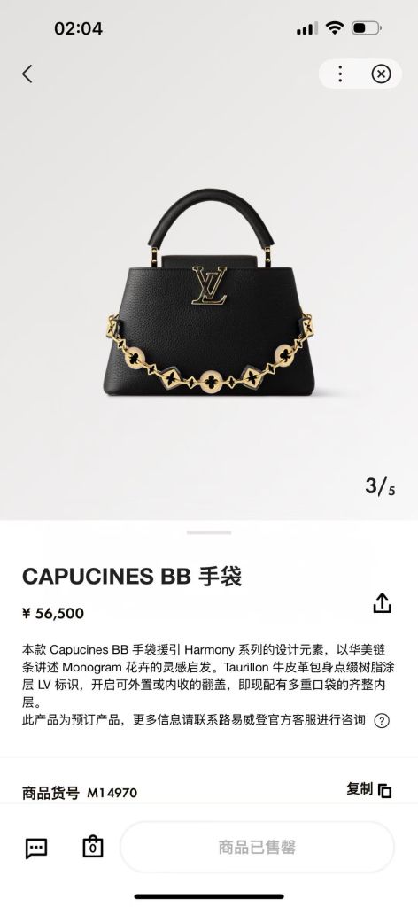 TÚI XÁCH NỮ LV* CAPUCINES HARMONY DA TAURILLON – DÂY CHUỖI MONOGRAM BIỂU TƯỢNG 7000k