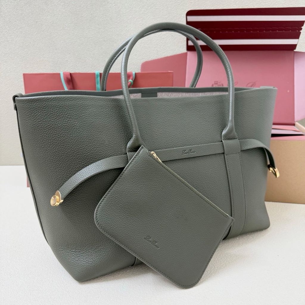 TÚI XÁCH NỮ LP* GHIERA SHOPPER – DA HẠT CAO CẤP, VÒNG GHIERA VÀNG, MÀU XANH RÊU 28cm 5400k/ 40cm 6400k (HÀNG ORDER QUỐC TẾ)