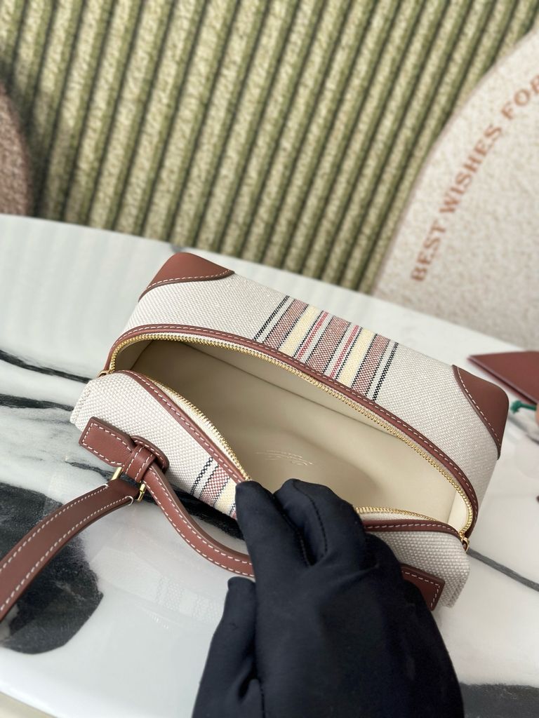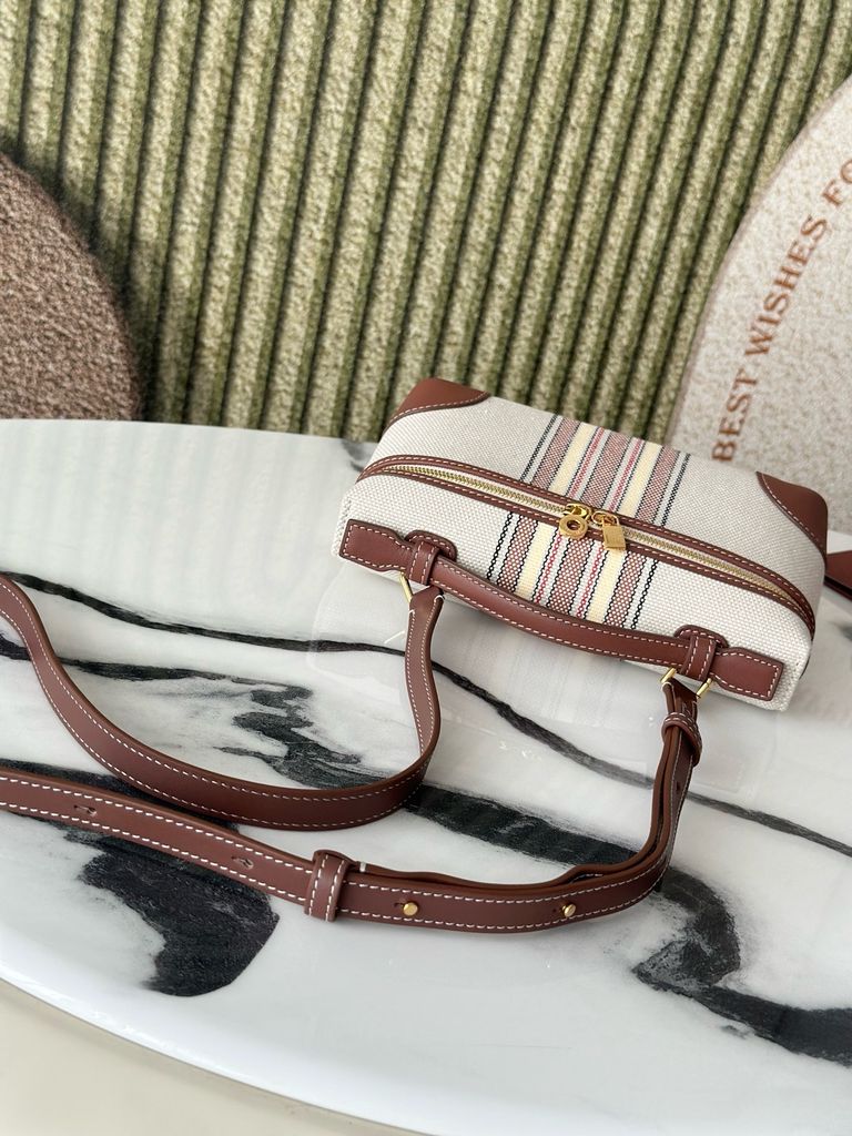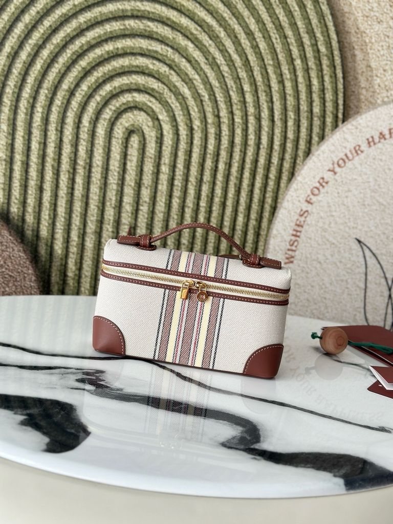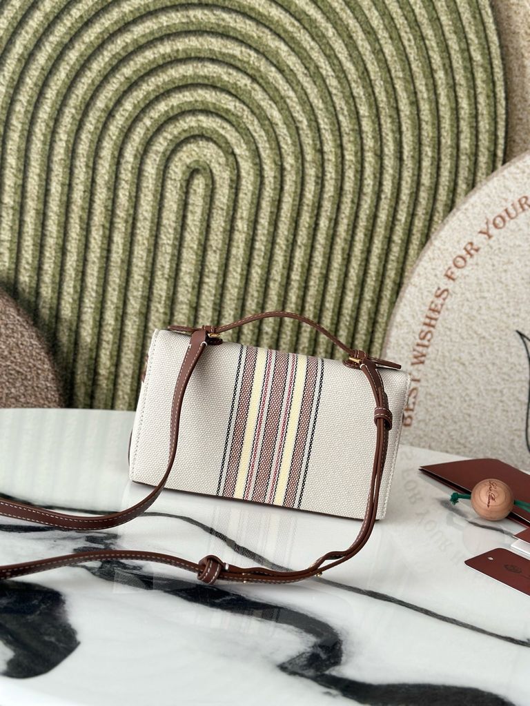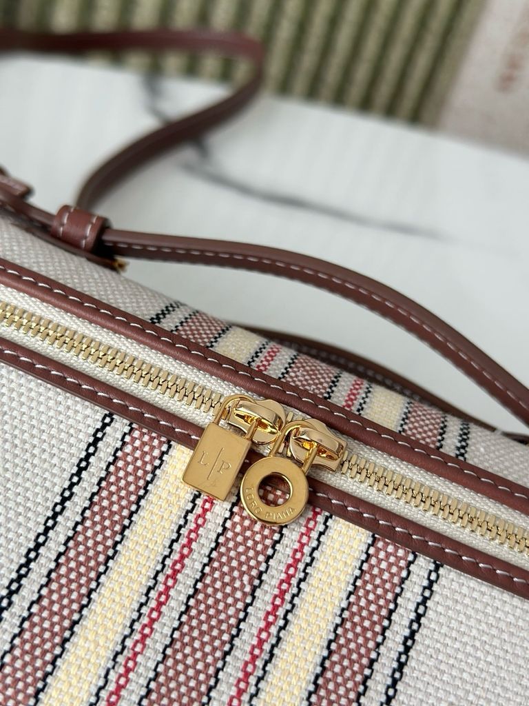 TÚI XÁCH NỮ LP* L19 CANVAS KẺ SỌC VIỀN DA NÂU THANH LỊCH CHUẨN PHONG CÁCH RESORT (HÀNG ORDER QUỐC TẾ)