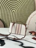 • Thân túi canvas sáng màu phối họa tiết kẻ sọc dệt nổi nhiều tông màu tinh tế, tạo điểm nhấn thời trang nhưng không bị “ồn ào”.