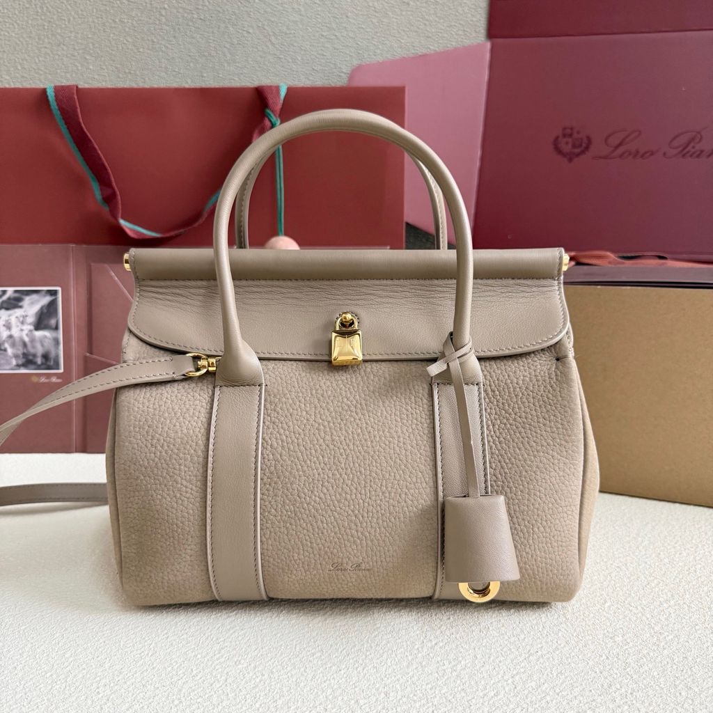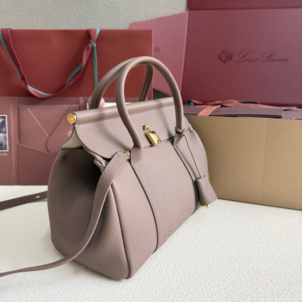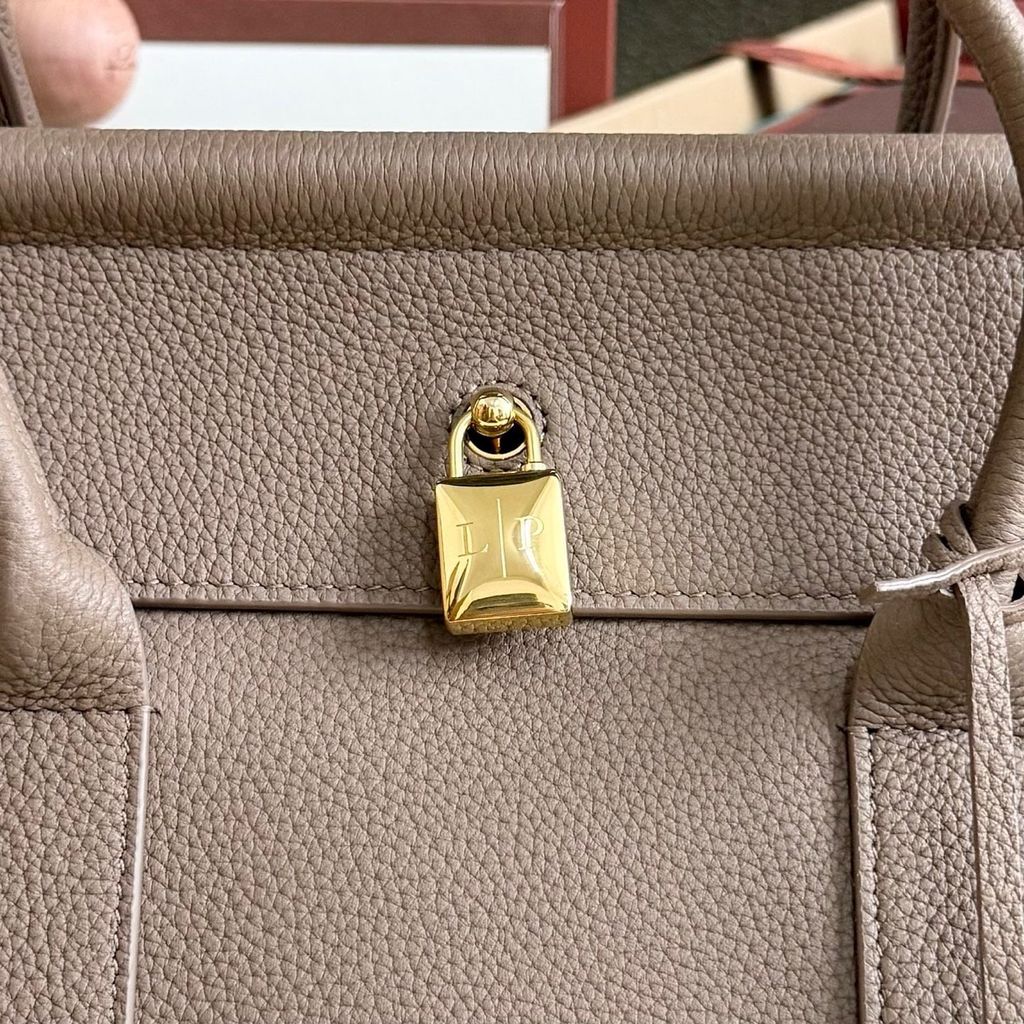 TÚI XÁCH NỮ LP* TOP-HANDLE DA HẠT TAUPE, KHÓA MẠ VÀNG 25cm 6500k (HÀNG ORDER QUỐC TẾ)